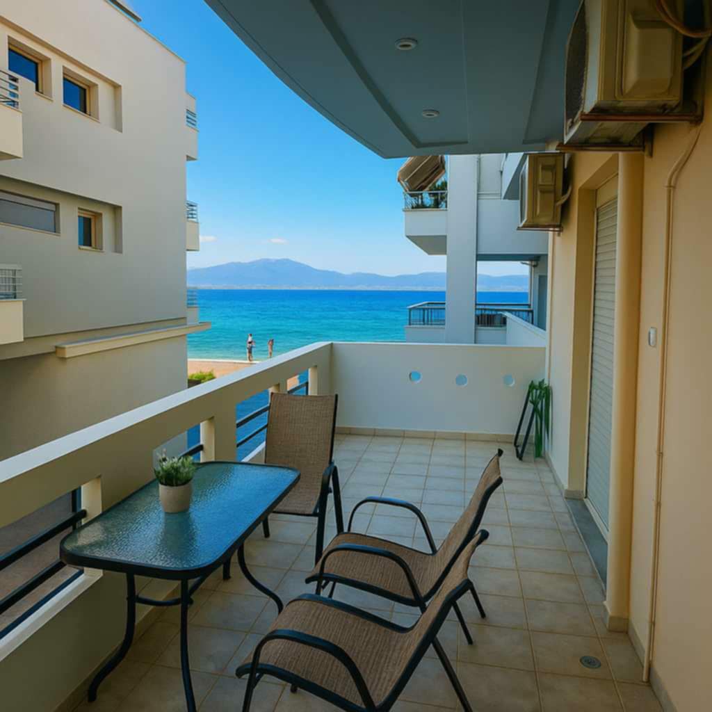 A beautiful spacious beachfront house situated just on the beach of the Corinthian Gulf in the Peloponnese, ideal for both families and couples wishing for a villa by the sea close to the most important archaeological attractions of the Peloponnese and near to the capital of Athens as well !Wireless Wi-fi all year long , brand new air-conditioning in every bedroom and closed garage among the many facilities this beachfront house is offering to guests