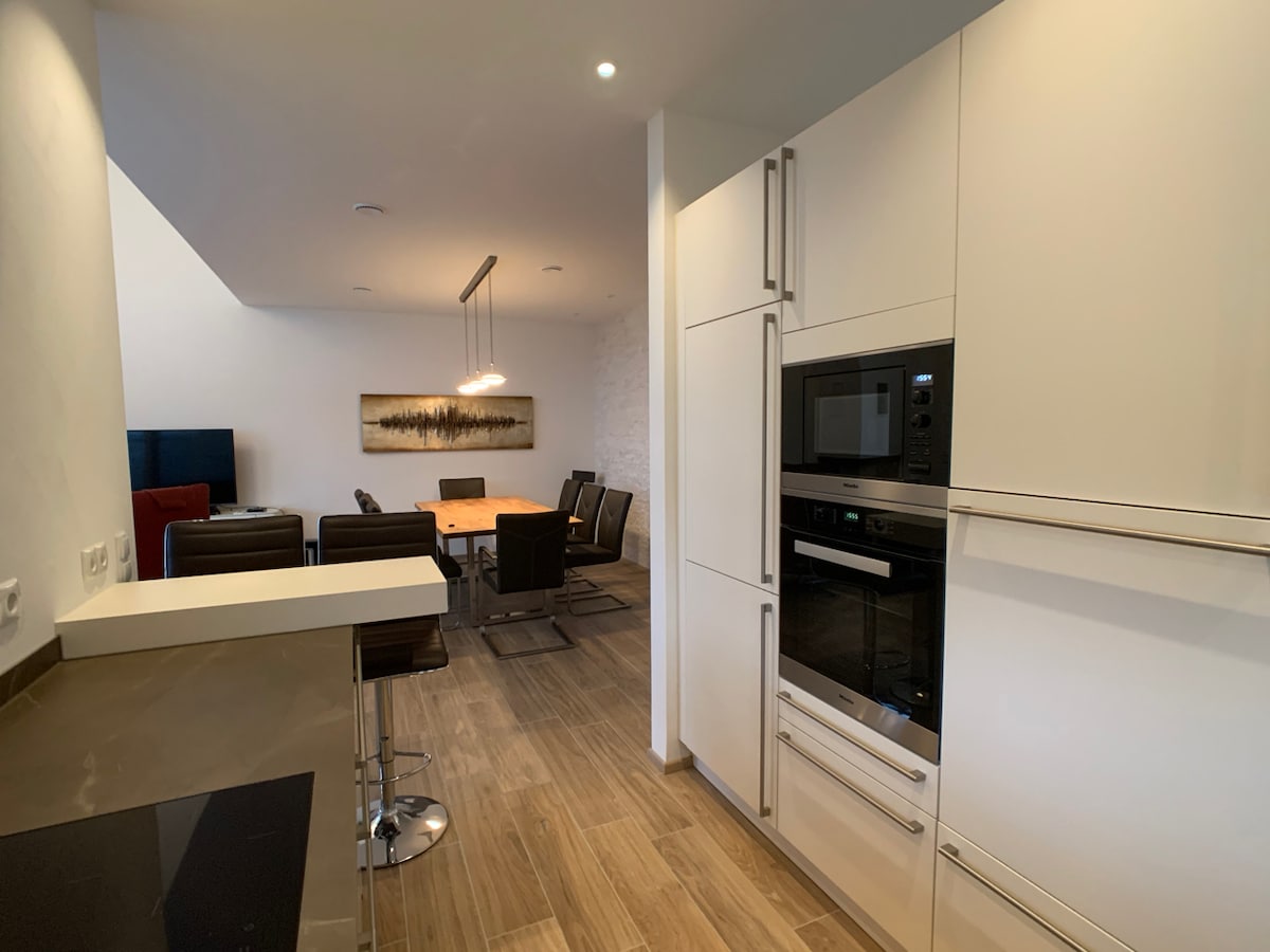Piękny, nowo odnowiony i w pełni umeblowany przestronny apartament (62 m²) z 2 oddzielnymi pokojami, każdy z łóżkiem małżeńskim, dla maksymalnie 4 osób. Można również ustawić łóżeczko dziecięce W łatwo dostępnej odległości (ok. 15 minut) od Europarku i Rulantica w Rust. W bezpośrednim sąsiedztwie znajduje się sklep spożywczy, w tym piekarnia i pizzeria. W przypadku pobytów dłuższych niż 7 dni, pościel jest zmieniana co tydzień Dobry dojazd do autostrady i przystanków