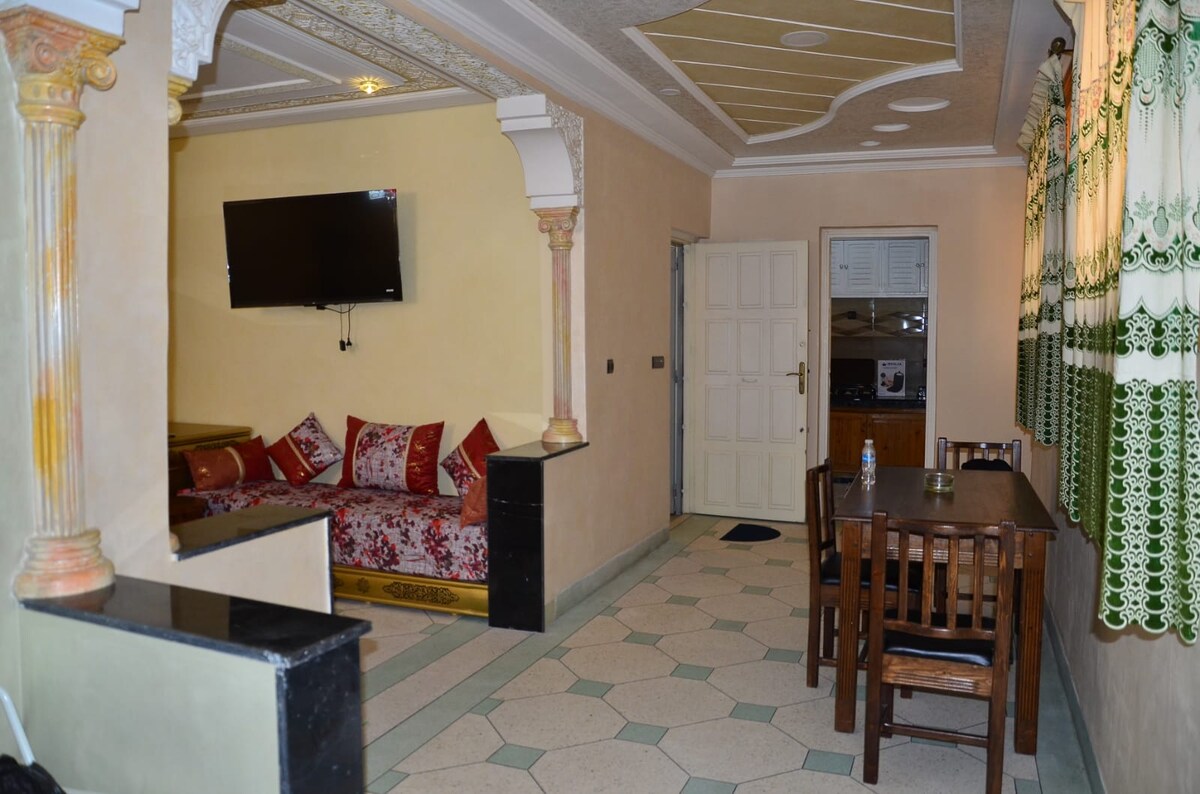 NB: les couples marocains non mariés ne sont pas acceptés. Un appartement style amazigh, unique et proche de tous les sites et commodités. Cet appartement rendra votre expérience de voyage unique dans son genre,dans une ambiance familiale et cosy