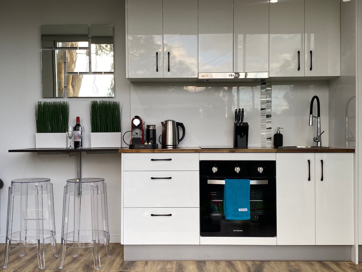 Luksusowo urządzony, wypełniony światłem apartament z jedną sypialnią położony wśród winorośli w Pialligo na 5 akrach, apartament ten ma widok na Parliament House i znajduje się zaledwie 8 minut jazdy od Canberra City i 3 minuty jazdy od lotniska. W odległości krótkiego spaceru znajdują się Rodneys Nursery Cafe, Beltana Farm, Tulips Cafe i Vibe Hotel, które oferują pyszne lokalne produkty i pięciogwiazdkową kuchnię. Smak kraju w mieście. Pięknie umeblowane wnętrze z kominkiem gazowym, telewizorem Smart TV, Wi-Fi i w pełni wyposażoną kuchnią z piekarnikiem Miele, ekspresem do kawy, kuchenką mikrofalową, czajnikiem, tosterem i pełnowymiarową lodówką. Goście zostaną przywitani serem, herbatnikami, winem – czerwonym, białym i musującym, chlebem, mlekiem, słodkimi herbatnikami, płatkami zbożowymi, świeżo złożonymi jajkami od naszych kur z wolnego wybiegu – Maggie, Beer & Oprah oraz dowolną herbatą, której dusza zapragnie. Dwukierunkowa łazienka zawiera szampon MOR, odżywkę, płyn do mycia ciała, balsam do ciała i mydło. Dla tych, którzy mogli zapomnieć o niektórych niezbędnych rzeczach, dostępny jest płyn do płukania ust, szczoteczka do zębów, pasta do zębów, czepek prysznicowy, zestaw podróżny (z niezbędnymi artykułami do szycia), a nawet zestaw do golenia.