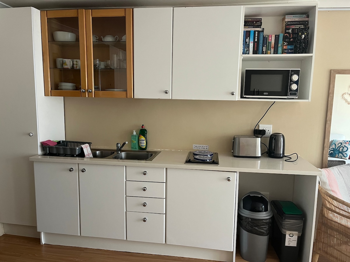 „Little Owl by the Sea” to niedrogi, w pełni umeblowany i wyposażony domek z własnym wyżywieniem, który może pomieścić 2 osoby. Znajduje się w spokojnym zaułku, zaledwie 5 minut spacerem (600 m) od plaży w Van Riebeeckstrand w pobliżu Melkbosstrand. Możesz słyszeć fale i czuć morze, stojąc w ogrodzie. Domek jest całkowicie Twój na czas pobytu. Znajduje się na terenie, który jest dzielony z głównym domem, jednak będziesz mieć pełną prywatność.