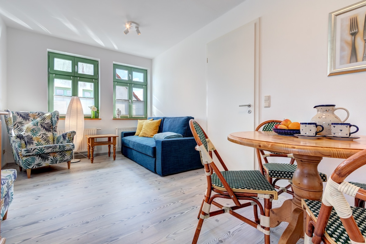Nasze małe mieszkanie (44 m²) na Starym Mieście w Wolgast czeka na Waszą wizytę :-) Mieszkanie jest położone bardzo centralnie między portem a rynkiem. Restauracje, kawiarnie i sklepy są w zasięgu spaceru. Bezpłatny parking dla mniejszych samochodów (dość ciasny, do rozmiaru VW Golf) znajduje się bezpośrednio przed drzwiami wejściowymi. Większe samochody można bezpłatnie zaparkować na niektórych parkingach na Starym Mieście. Niedaleko mieszkania znajduje się przystanek pociągu Bäderbahn, który kursuje na wyspę Uznam, a także połączenia autobusowe.