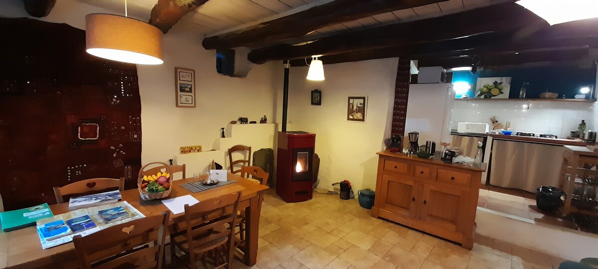 Located outside a small, quiet hamlet (altitude 800 metres) at the end of a winding road, the south-facing barn enjoys panoramic views of the mountains, and is surrounded by fields and woods - with no vis-à-vis! Entirely renovated using ecological materials, the gîte retains all the charm and authenticity of a Pyrenean dwelling, but with all the comfort of a purpose-built gite. The barn caters to everybody – couples, solos, families with children, and walkers with their four-legged friends.