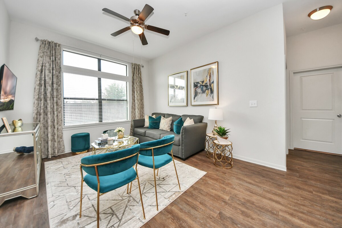 Pięknie zaprojektowane i w pełni umeblowane luksusowe mieszkanie z 1 sypialnią i 1 łazienką, położone w Medical Center, blisko stadionu NRG i w pobliżu wszystkich atrakcji centrum Houston. Korzystaj z bezpłatnego parkingu, szybkiego Wi-Fi, Netflixa, całodobowego dostępu do siłowni, pralki i suszarki, ekspresu do kawy i wszystkich udogodnień hotelowych. Ten wspaniały dom jest przestronny, przytulny i relaksujący. To idealne miejsce na relaks po długim dniu zwiedzania tętniącego życiem miasta Houston lub długich wizyt lekarskich. Witaj w swoim domu z dala od domu.