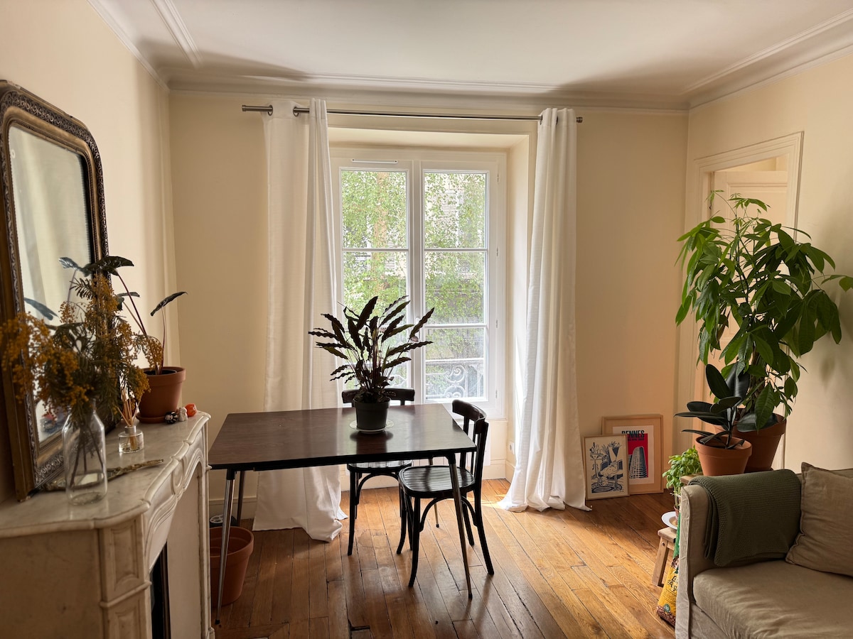 Na czwartym piętrze paryskiego budynku znajduje się apartament o powierzchni 37 m² z niezakłóconym widokiem i rzadkim spokojem. Antyczny parkiet, szkło z warsztatu i otwarta kuchnia – wszędzie jest światło. W okolicy Gambetta–Père-Lachaise jest wiele kawiarni, restauracji, targów i małych sklepów. Metro (linia 3) i kilka linii autobusowych, które znajdują się w odległości dwóch minut, ułatwiają dotarcie do wszystkich dzielnic Paryża. Miejsce dla dwojga, jasne i eleganckie, idealne do odkrywania miasta w inny sposób.