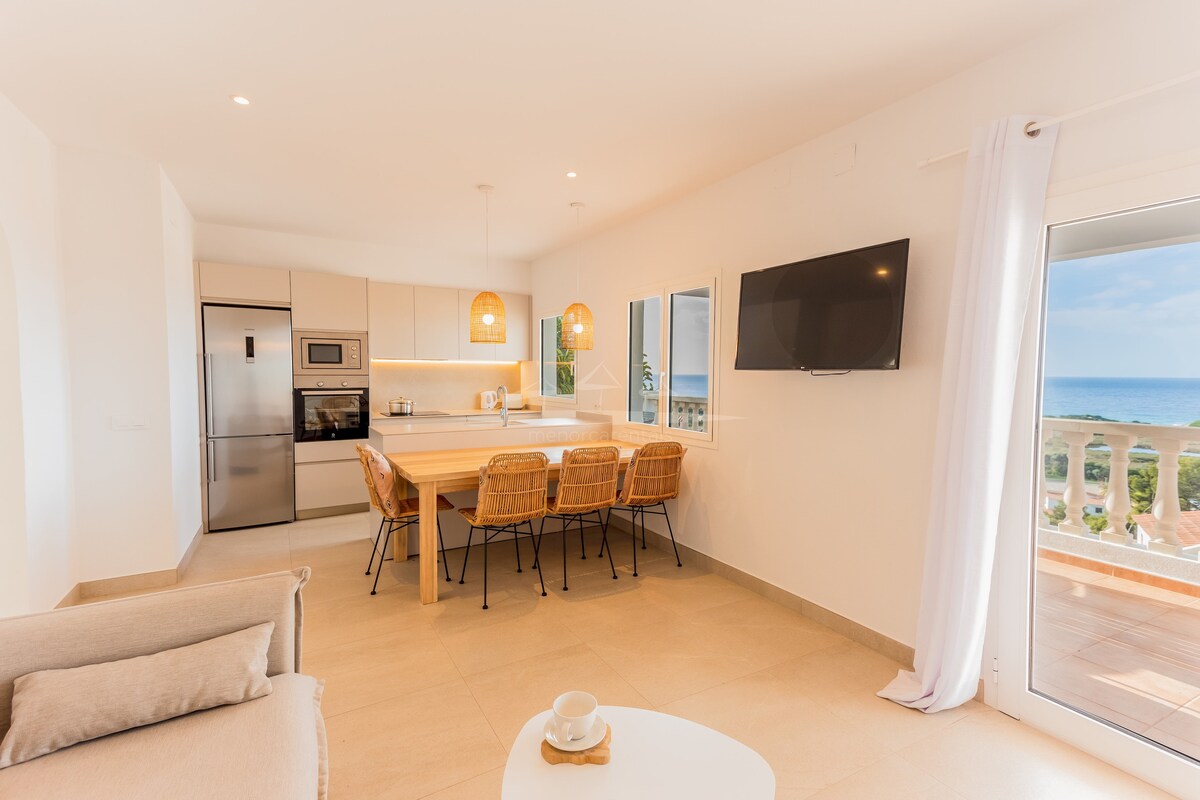 Tradycyjny dom w stylu menorkańskim z wieżą i gankiem. Położony nad klifem wychodzącym na morze, z pięknymi widokami i prywatnym zejściem na morze z domu (współdzielony dostęp z sąsiednim domem). Przyjrzyj się warunkom morskim i zapoznaj się z instrukcjami bezpieczeństwa przed zejściem na dół). Posiada 3 apartamenty z łazienką i widokiem na morze (jeden z nich w wieży). 1 pokój dwuosobowy i jedno łóżko piętrowe dla 4-6 osób, które dzielą łazienkę. Całkowicie odnowiony dom w 2020 roku.