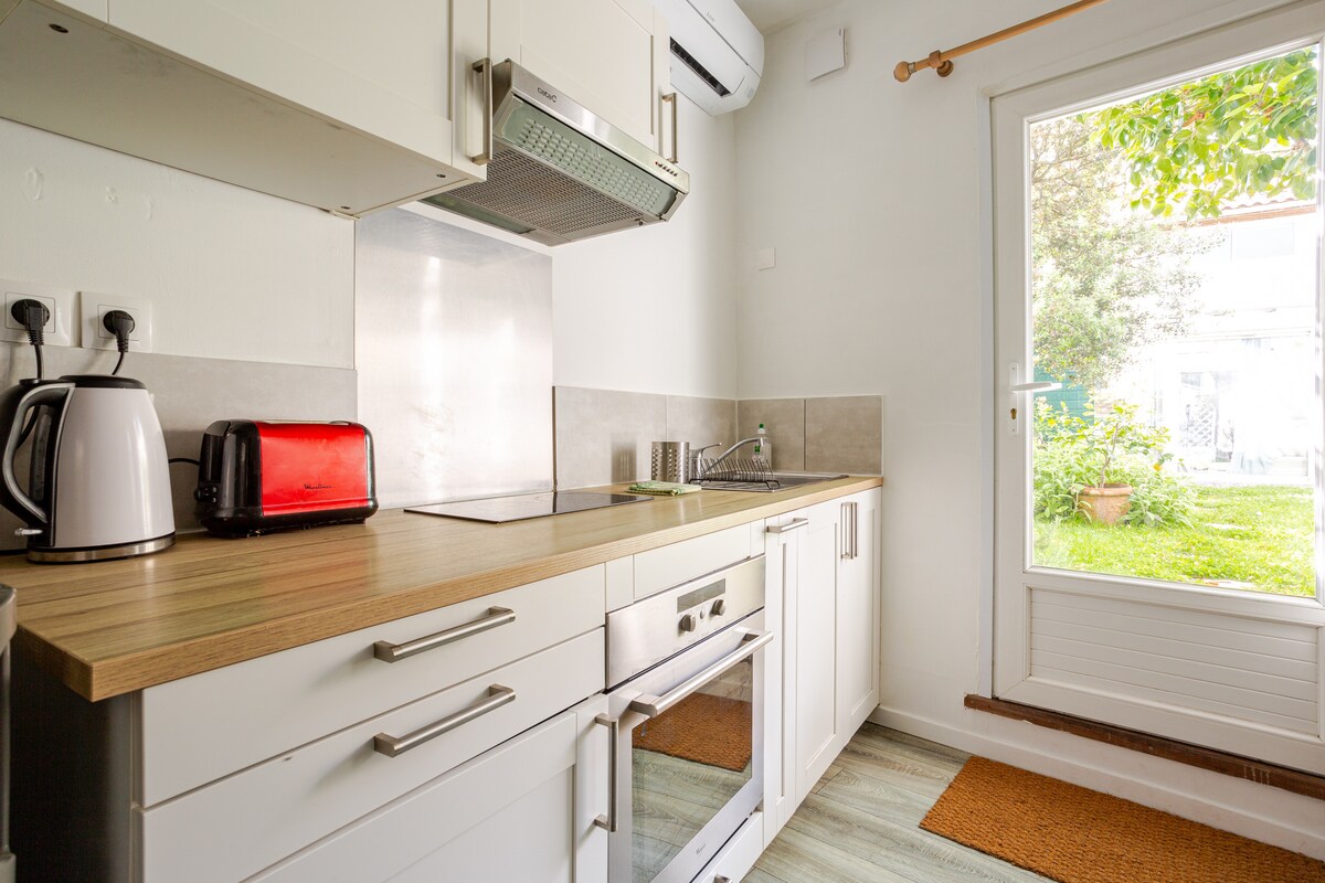 Ułatw życie w tym spokojnym, centralnie położonym domu. Znajduje się 3 km od lotniska Mérignac, do centrum Bordeaux, 25 minut jazdy samochodem, w pobliżu wszystkich sklepów, położonych w Mérignac Chemin Long. Przed obiektem znajduje się miejsce parkingowe . Dostępna jest opcjonalna wanna z hydromasażem (40 €/noc), idealna dla gości szukających odpoczynku w pobliżu wszystkiego. Będziesz cieszyć się ogrodem, tarasem i stołem do jedzenia na mieście. Opcjonalna pościel.