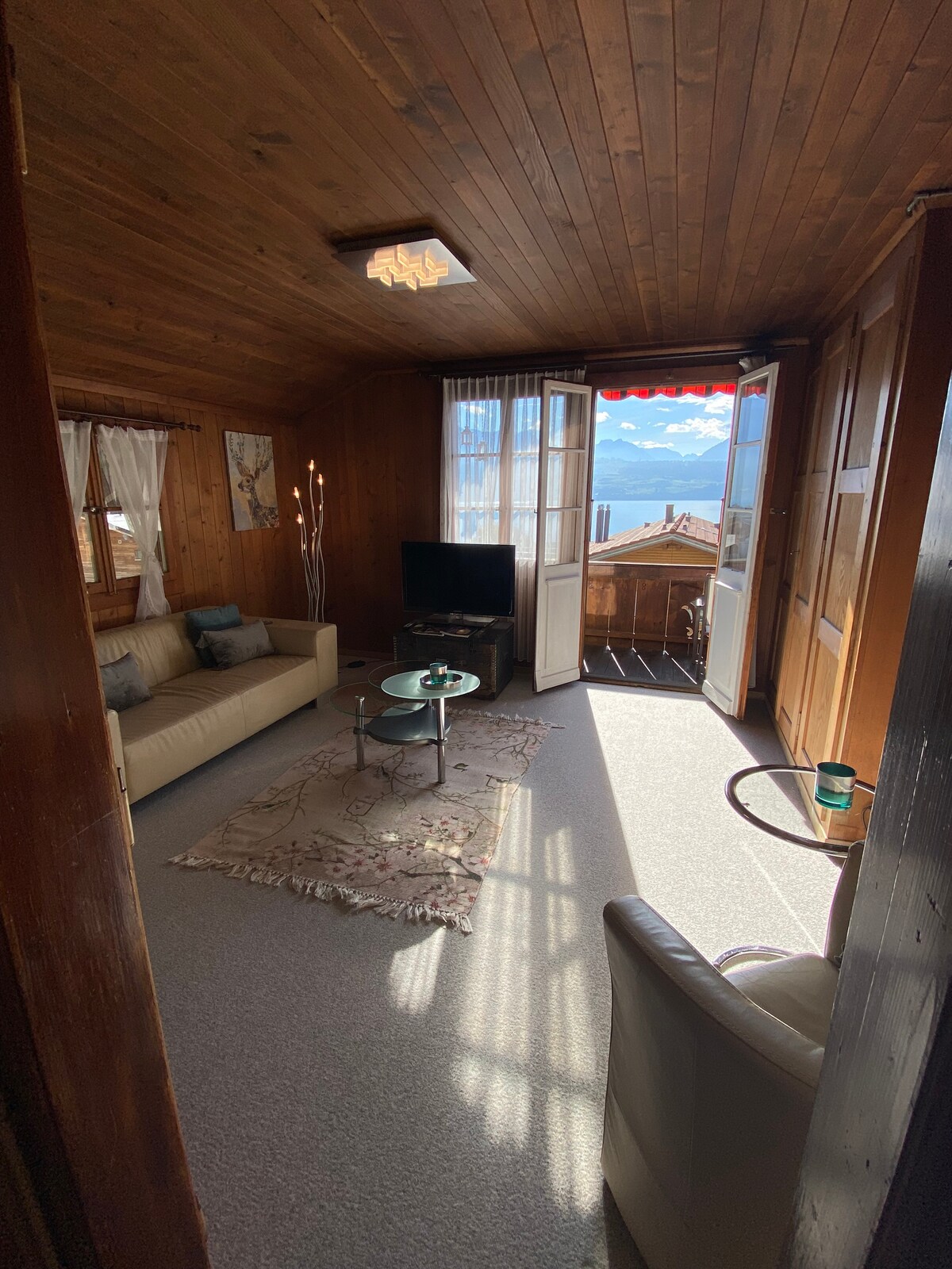 Das romantische "CHALET EGGLEN" liegt etwas oberhalb vom Thunersee in Sigriswil, an absolut bester Lage, inmitten einer intakten, Schweizer Nachbarschaft. Das Chalet bietet Privatsphäre bei bester Postkarten- Aussicht über den Thunersee und in die umliegende Bergwelt. Von jedem Fenster geniessen Sie einen überwältigenden Ausblick über den Thunersee. Auf der Südseite befinden sich die 2 Balkone, Whirlpool, Sofa Esstisch und ein Grill. Auf der Nordseite finden Sie 2 private Parkplätze.