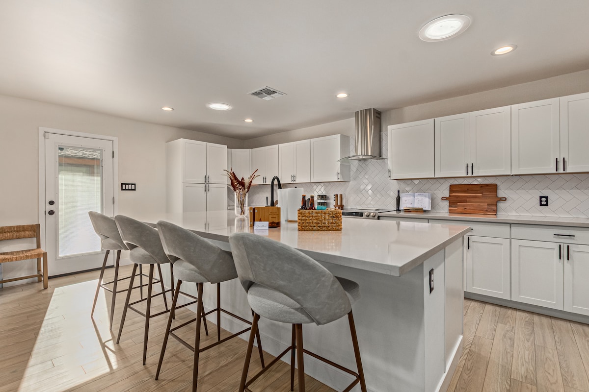 Ciesz się tym luksusowym Airbnb położonym w samym sercu centrum Gilbert – zaledwie jedną przecznicę na wschód od Joe 's BBQ, Snooze, Dierk' s Bentley Whiskey Row, Gilbert Farmer 's Market, Hale Theatre i innych! Ten dom ma 2 sypialnie, 2 łazienki i niesamowity loft, który może pomieścić łącznie 8 osób. Podwórko jest idealne do zabawy – wraz z kominkiem gazowym i niesamowitym widokiem na wieżę ciśnień Gilbert! Organizowanie imprez i wydarzeń jest zabronione bez zgody gospodarza przed dokonaniem rezerwacji + dodatkowa opłata.