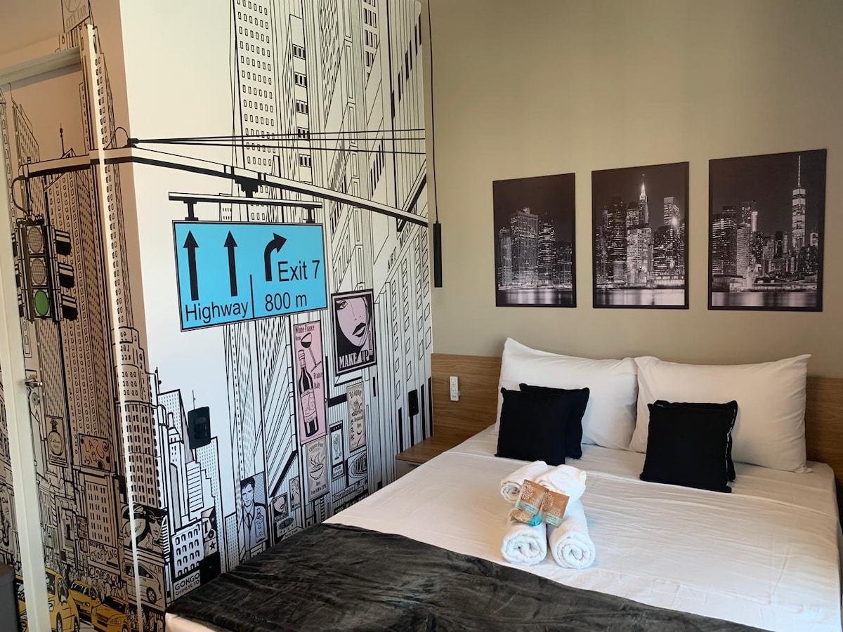 Eleganckie i w pełni wyposażone studio, zaledwie 4 minuty spacerem od stacji metra Brooklin. Idealne na wyjazdy służbowe lub rekreacyjne, oferuje wygodne łóżko typu queen, w pełni wyposażoną kuchnię z przyborami, balkon z widokiem na miasto, szybkie Wi-Fi i klimatyzację. Nowoczesny budynek oferuje przestrzeń do pracy, siłownię i pralnię. Blisko centrów handlowych, doskonałych restauracji, targowisk i głównych dróg miejskich. Gwarantowany komfort i wygoda!
