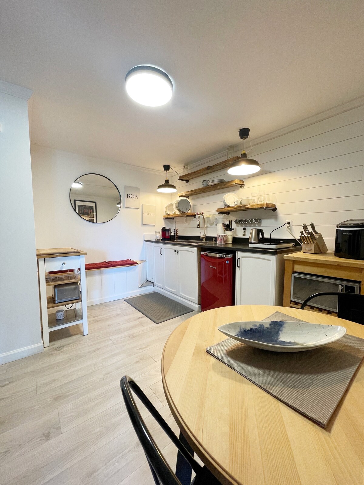 Welcome to your Scandinavian style large one-bedroom, one-bath, plus office retreat, perfect for couples or solo travelers. Enjoy a private entrance with keyless entry, office, wi-fi, and a fully stocked kitchen with coffee, tea, and espresso provided. Relax in your own private courtyard with a covered patio, fire pit, dining table, Weber BBQ, and seating. Ideal for work or relaxation—everything you need for a comfortable stay. Babies/toddlers welcome - highchair, car seat, pack n play, bed.