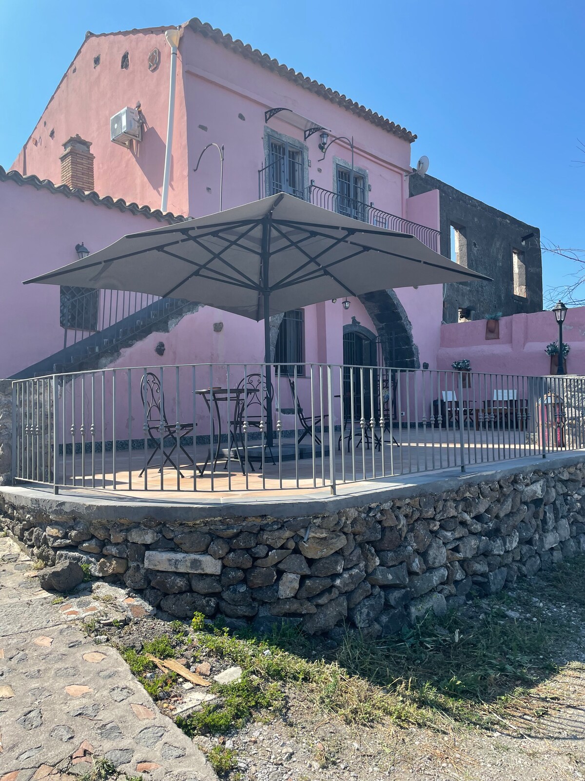 Jeśli jesteś zatłoczoną grupą lub rodziną, możesz skorzystać z tej opcji. Dwie jednostki, jedna paczka i specjalna stawka. Połączenie obu jednostek pozwala na całkowitą pojemność 11-12 osób, a zaletą jest ich pełna obsługa. Cała willa składa się z jednostki piwnicznej (Mongibello) i jednostki najwyższego piętra (Andronico) zbudowanej z kamienia młyńskiego z 1793 roku z lokalnego kamienia lawowego. Przestronne otwarte przestrzenie, miejsce na grilla, basen z salonem i zapierającym dech w piersiach widokiem na Zatokę Perską i wulkan.