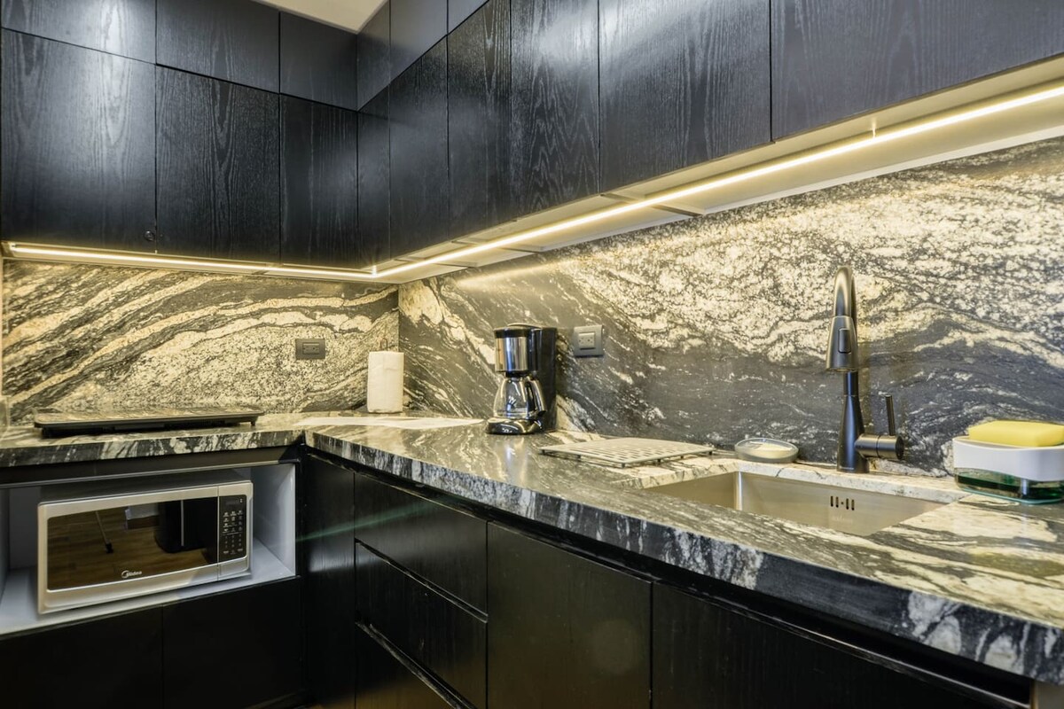 Apartament 1004 ma strategiczne położenie: zaplanowanie wizyty będzie bardzo łatwe! Apartament posiada łóżko małżeńskie i rozkładaną sofę, w pełni wyposażoną kuchnię, a także dostęp do restauracji w Roof Garden. Możesz też korzystać z basenu panoramicznego, o ile jest dostępny. Niezrównany widok na miasto, kilka kroków od Santa Lucia, Macroplaza, Pałacu Gubernatora, 3 muzeów i teatru. 4 km od Fundidora, Arena Monterrey, Cintermex i Citybanamex.