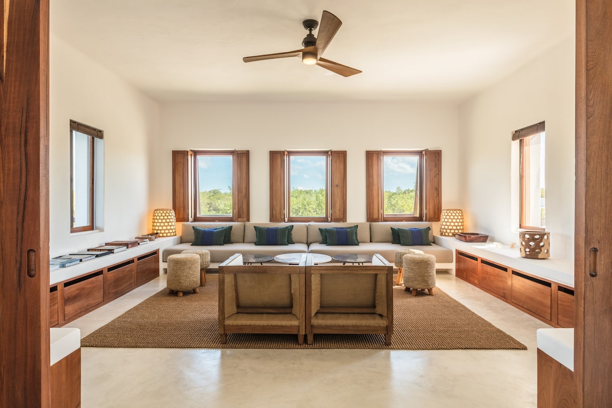 NIE TYLKO PLAŻA... OSZAŁAMIAJĄCA VIRGIN BEACH OF THE SIAN KA'AN B_COUNT }-SPHERE: NAJBARDZIEJ UNIKALNY, NIESPRZĄTANY I EKSKLUZYWNY CEL PODRÓŻY TULUM. Uwolnij się od tłumów w naszej luksusowej, odnowionej, ekologicznej willi przy plaży położonej w dziewiczej Sian Ka 'an biosfera reserva Położony na zapierającej dech w piersiach 1000 kontynuuj prywatną plażę z nieskazitelnym białym piaskiem i ciepłym karaibskim oceanem; wśród bujnej tropikalnej roślinności, otoczonej piękną niebieską laguną. **** Grudzień i 5 stycznia minimalny pobyt