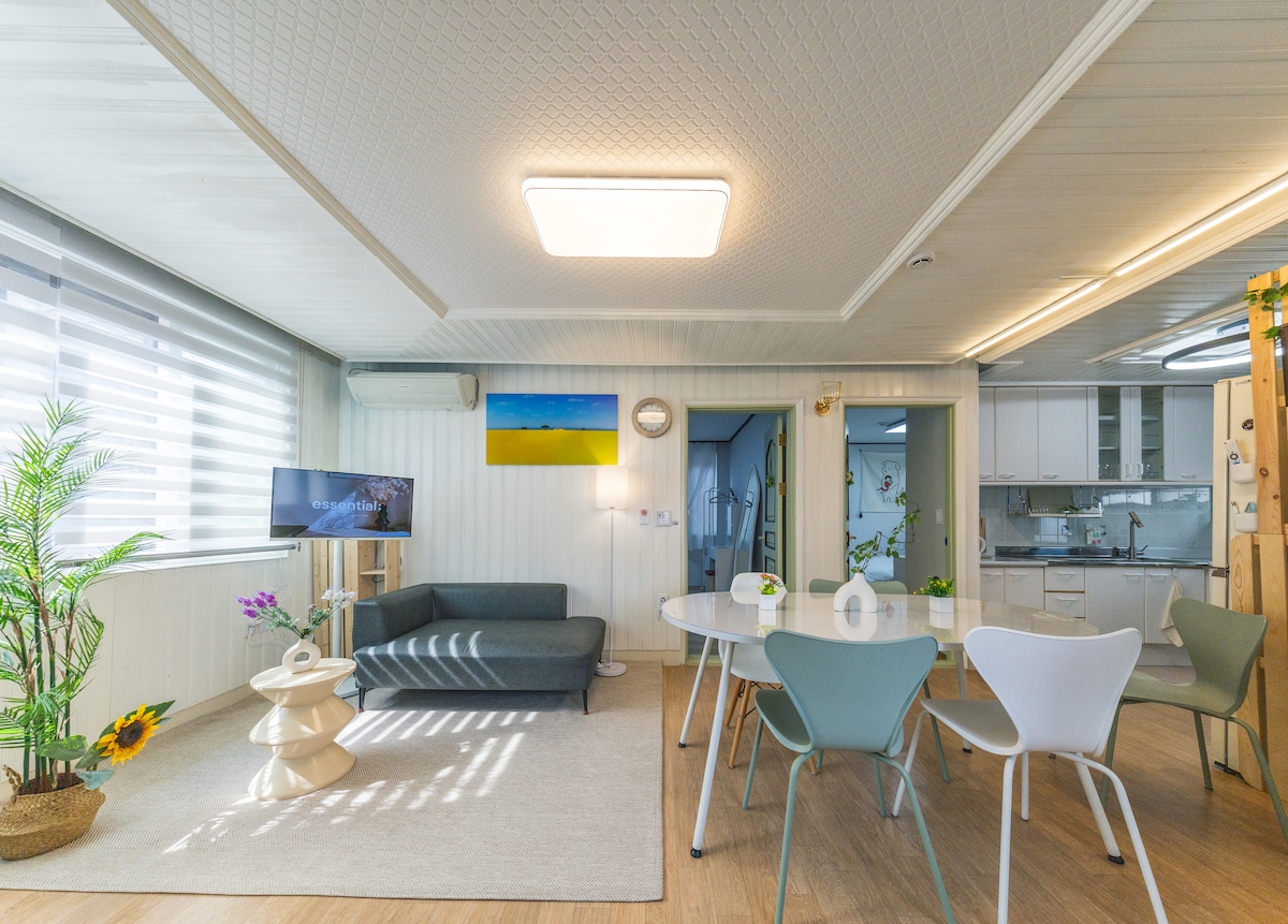 3 pokoje|2 łazienki|5 minut od stacji kolejowej Elbe·15 minut od Dongdaemun·25 minut od Myeong-dong·Maksymalnie 8 osób·Spotkania towarzyskie·Bukhansan·Suszarka