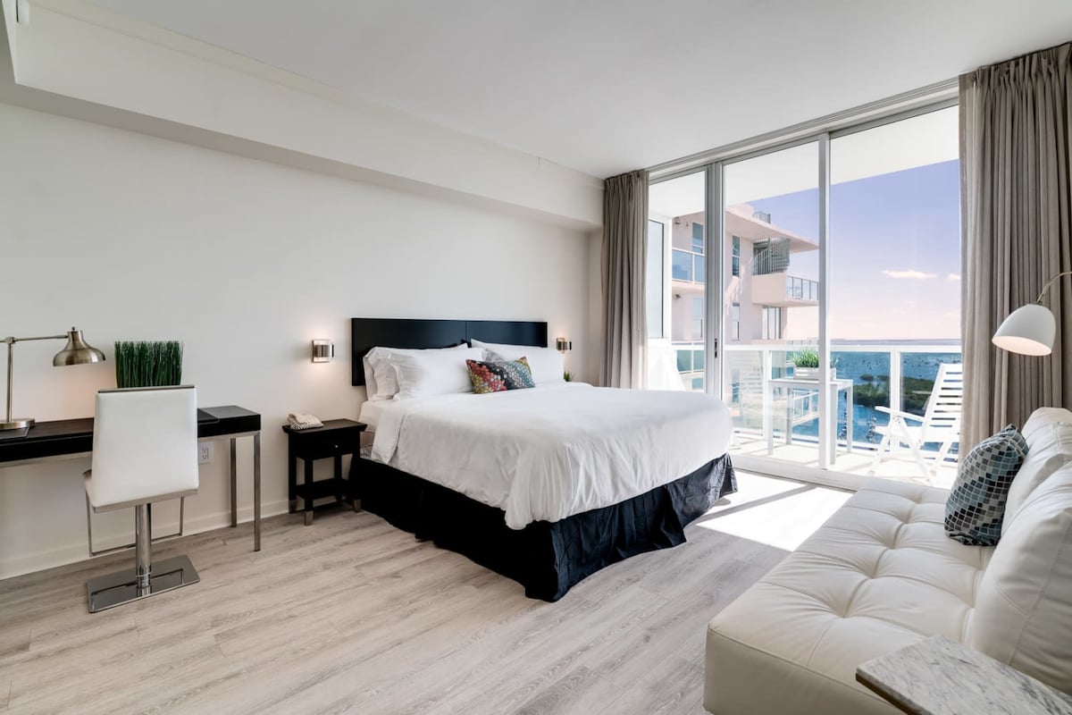 Odkryj najlepszy styl życia w Miami w tym oszałamiającym apartamencie z dwiema sypialniami, dwiema łazienkami i wysokimi na 17 stóp sufitami. W pełni wyposażone w podstawowe przybory kuchenne, ręczniki i Wi-Fi mieszkanie znajduje się w kultowym W Hotel Icon, zaprojektowanym przez Philippe'a Starcka. Korzystaj z najwyższej klasy udogodnień, takich jak jacuzzi, basen z podgrzewaną wodą i balkony z zapierającymi dech w piersiach widokami na miasto i rzekę z 28. piętra. Od końca lipca 2025 roku basen będzie otwarty tylko w piątki, soboty i niedziele.