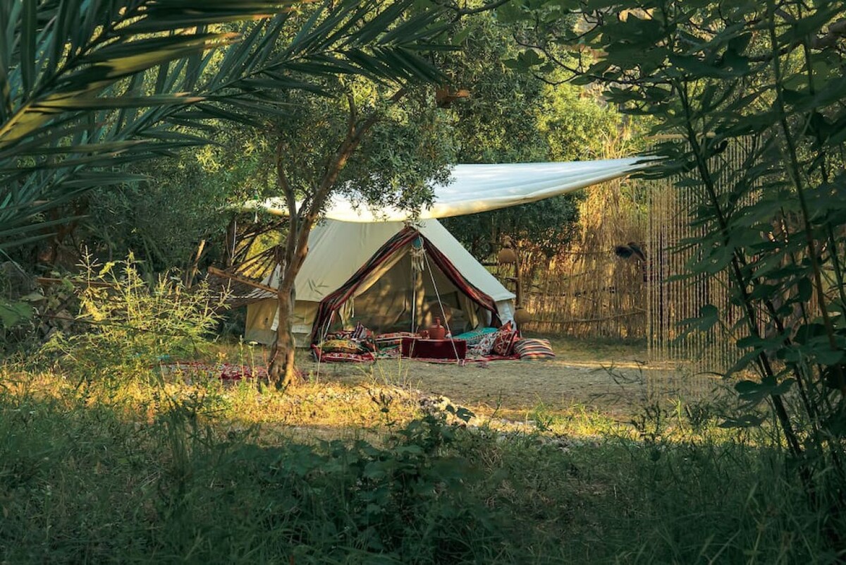 Glamping na plaży w Dolinie Motyli – dojazd tylko łodzią (12 EUR z Ölüdeniz). Nocuj 2 minuty od morza w tradycyjnych namiotach z Wi-Fi, wentylatorem i gniazdkami. Ciesz się bezpłatną codzienną jogą, wędruj do ukrytego wodospadu, wspinaj się po skałach, nurkuj lub zrelaksuj się w jednym z 3 barów na plaży z bezpłatnymi leżakami i parasolami. Wieczory przynoszą muzykę zachodzącego słońca przy klifach i obserwowanie gwiazd z prywatnego tarasu. 🌿 Mile widziane są osoby podróżujące w pojedynkę, pary i rodziny Pakiet 🍽️ żywnościowy: 20 EUR/dzień (śniadanie i kolacja)