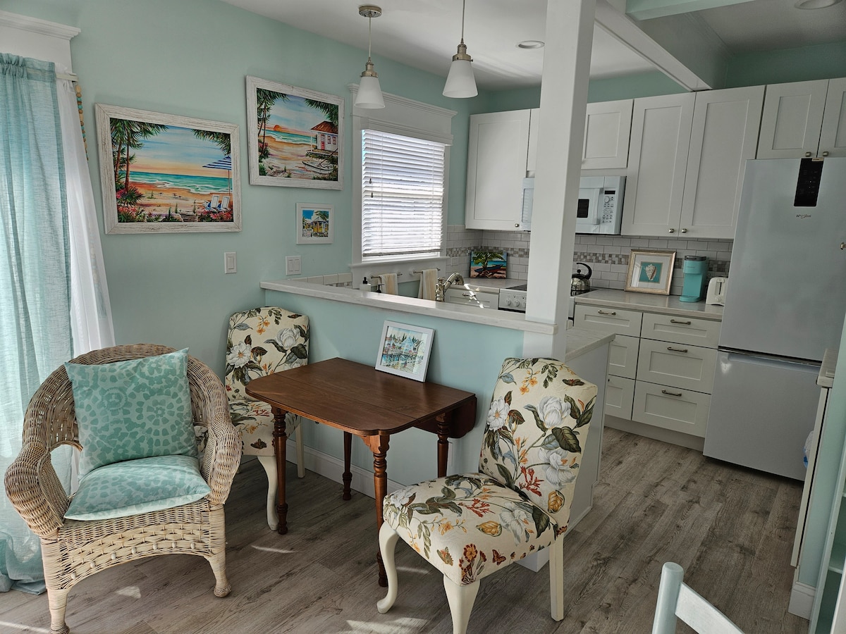 Ten apartament typu studio z jedną sypialnią i łazienką jest idealny na weekendowy wypad! Apartament jest połączony z domem właścicieli na stałe z prywatnym bocznym wejściem do apartamentu. Nie ma przestrzeni wspólnych dla właściciela i gości. Tylko 5 minut od zatoki i 15 minut od Cape May City! Przestrzeń: Apartament posiada aneks kuchenny zawierający: kuchenkę mikrofalową, ekspres do kawy, mini lodówkę/zamrażarkę. Telewizor z płaskim ekranem. Klimatyzacja/ogrzewanie. Wi-Fi. Łóżko małżeńskie. Parking na ulicy dostępny dla gości.