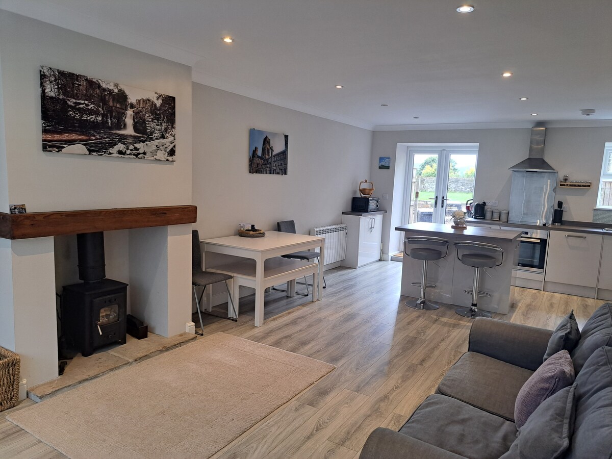 Uroczy, specjalnie zbudowany aneks z kuchnią wyposażoną w pralkę, zmywarkę, lodówkę, piekarnik/kuchenkę i mikrofalówkę. Salon ma telewizor z odtwarzaczem DVD, książki i gry, Wi-Fi, rozkładaną sofę i drzwi francuskie do ogrodu z krzesłami/stolikiem i grillem. W sypialni znajduje się łóżko typu superking, które można rozpiąć i odłączyć, aby w razie potrzeby uzyskać dwa pojedyncze łóżka, oraz wbudowane szafy. Łazienka ma prysznic nad wanną z umywalką i toaletą. Nieruchomość ma ogrzewanie podłogowe i bezpieczne przechowalnie na rowery itp.