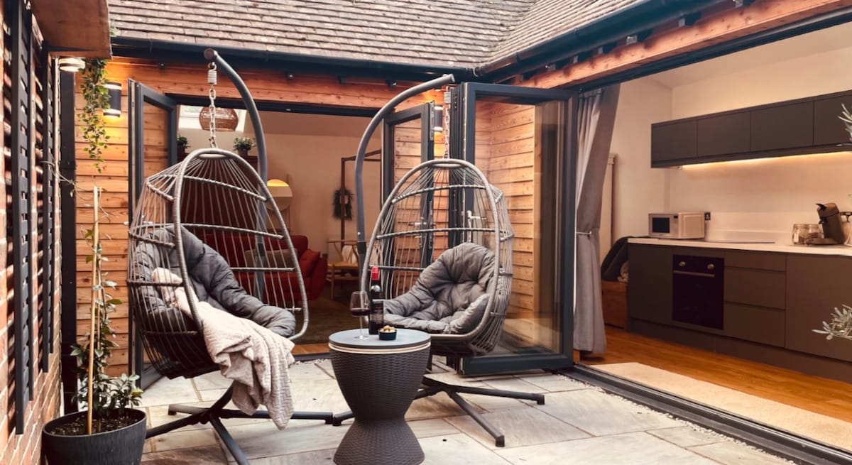 Lekkie, przestronne studio oferujące spokój, relaks i wygodę. Puby, kawiarnie i historyczne Midhurst znajdują się w odległości krótkiego spaceru. Zrelaksuj się na zacisznym dziedzińcu, spędź przytulny wieczór w przestronnym salonie i wyśpij się w łóżku Super King. – Łóżko z baldachimem typu Super King – Osobny dziedziniec z miejscami do siedzenia – Wysokie sufity i jasny, otwarty układ – Spacer do pubów, kawiarni i sklepów - Parking terenowy – Rozkładana sofa zapewnia elastyczne miejsce do spania – Spacery po South Downs, urokliwe wioski i wycieczki nadmorskie – W pobliżu Goodwood i Cowdray