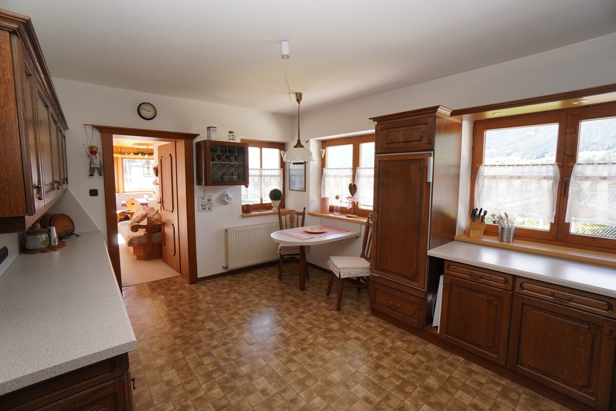 Położone na obrzeżach tyrolskiej górskiej wioski to miejsce oferuje wspaniały, szeroki widok. Mieszkanie, z miłością łącząc tradycję i nowoczesność pozwoli Ci się uspokoić i naładować baterie natychmiast. W pobliżu kolejki linowej można uprawiać wszelkiego rodzaju sporty górskie latem i zimą. Mimo to - nawet ci, którzy po prostu „zostają i zrelaksują się”, poczują się jak w domu. WIFI, TV, BT-boxes, miejsce parkingowe są dostępne bezpłatnie; w przypadku sauny bierzemy małe feey. Kuchnia jest dobrze wyposażona .