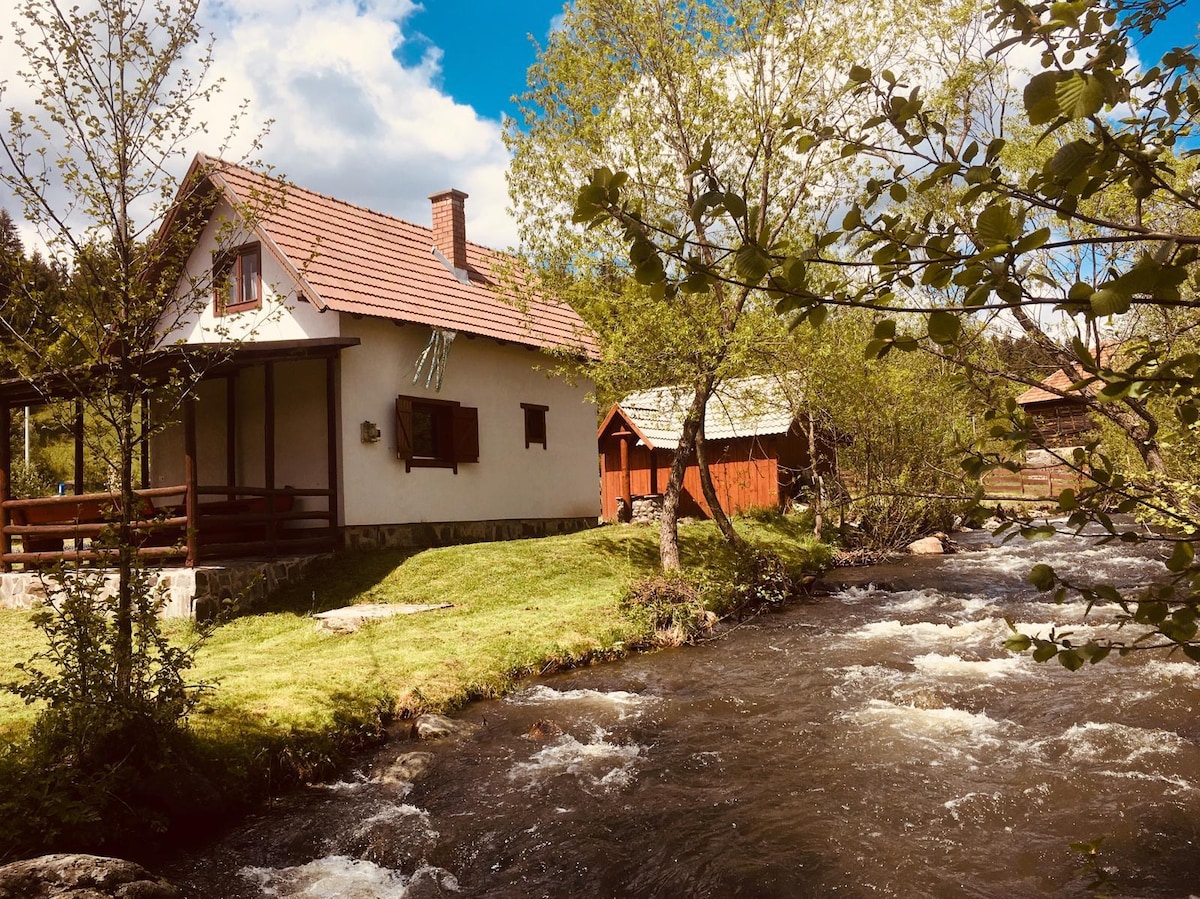 Górski domek letniskowy w spokojnej okolicy tuż przy lesie – idealne miejsce na relaks i ucieczkę od zgiełku miasta. Dom posiada pokój z rozkładanym łóżkiem, w pełni wyposażoną kuchnię, łazienkę i balkon ze wspaniałym widokiem na przyrodę. W ogrodzie znajdują się tereny zielone idealne do wypoczynku, a także grill do przyrządzania najlepszych potraw. Świeże powietrze, cisza i prywatność. Idealne dla par lub jednej osoby.