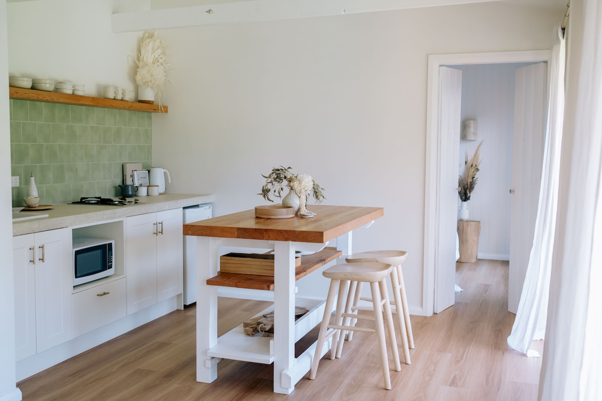 Szerokie otwarte przestrzenie z pięknym widokiem z tego studia w stylu pensjonatu, zaledwie 10 minut od Milton. Jest wiele do zrobienia, od zwiedzania nieruchomości, sprawdzania kawiarni, butików, restauracji i miejsc Milton, po piękne lokalne spacery i surfing lub po prostu wieszanie się na plaży. Każdy znajdzie tu coś dla siebie. Studio posiada aneks kuchenny. Wyposażenie kuchni obejmuje pojedynczą płytę indukcyjną, kuchenkę mikrofalową, grill Weber i mini lodówkę.