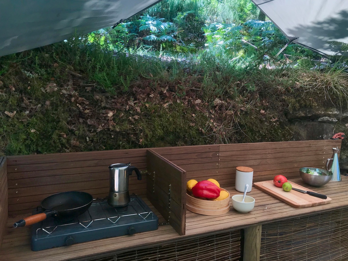 Doskonałe miejsce na odpoczynek i naładowanie baterii w małym dębowym lesie w Covas w Serra d 'Arga. Kopuła posiada w pełni wyposażoną kuchnię na zewnątrz i łazienkę z prysznicem na zewnątrz w odległości zaledwie kilku metrów. ŁAZIENKA jest PRYWATNA, nawet jeśli wydaje się inaczej we wcześniejszym komentarzu. W regionie znajduje się kilka naturalnych jezior z czystą wodą i szlakami turystycznymi. Plaże Moledo i Caminha oddalone są o około 30 minut drogi. Za 25,- możesz wynająć naszą saunę namiotową.