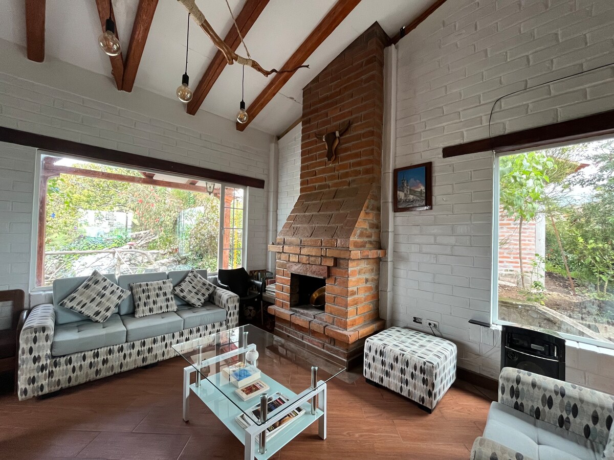 Lovely suite with panoramic view of the mountains, spacious and comfortable rooms and social areas, outdoor pool and jacuzzi, WIFI, fully equipped kitchen, gift basket, terrace and sunshade. Located in San Jose de Chaltura, 15 minutes from Ibarra, 1:30 hours from the International Airport, Quito. This Farm Home was designed to help you connect with nature, rest and renew, surrounded by a unique landscape, exclusive for you. The property has 6 hectares of gardens, fruit trees and avocado trees.