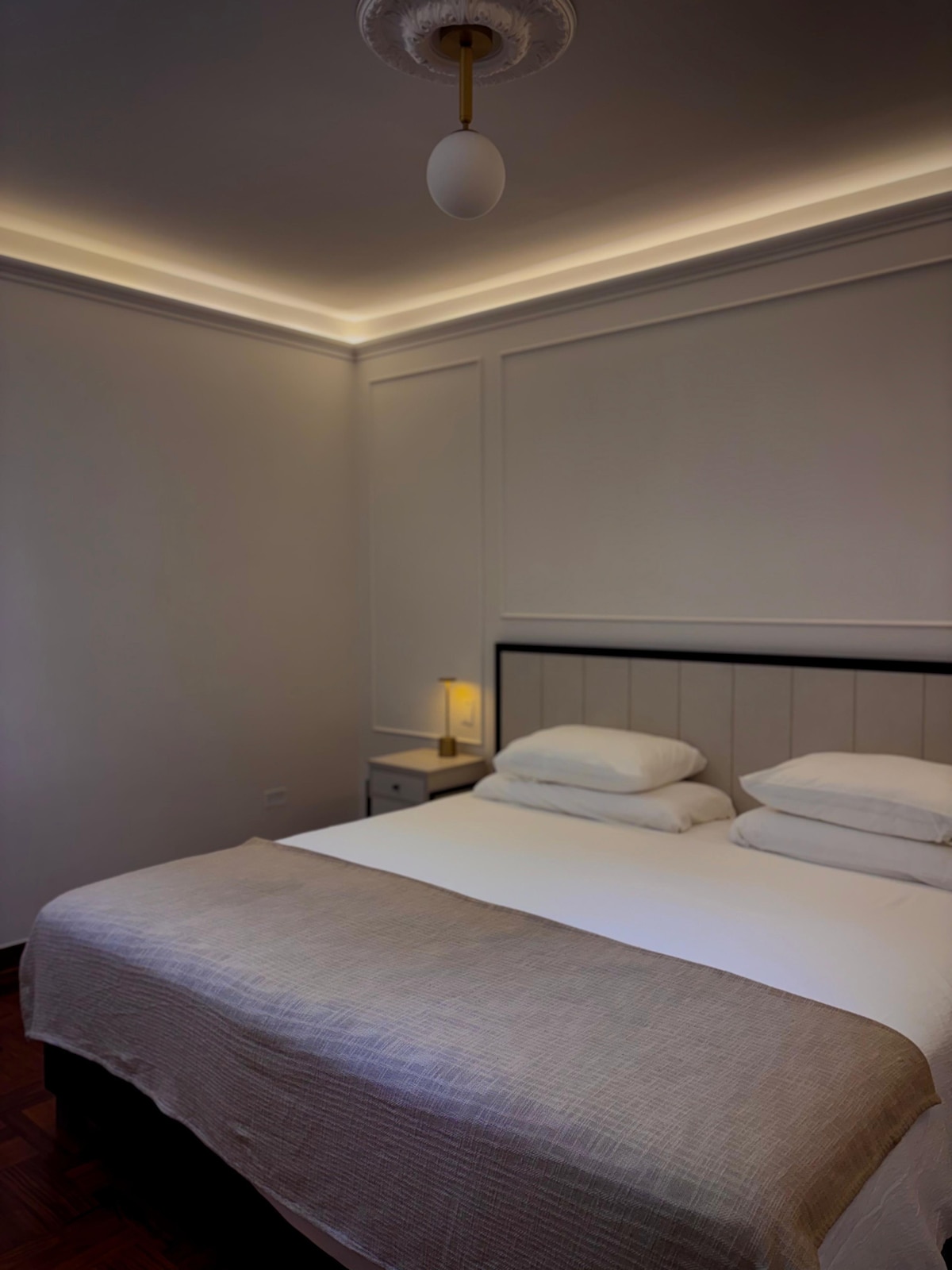 Suite privada de lujo en Casa, Quinta Prado Miraflores. Diseñada para una experiencia premium, cuenta con una amplia cama King, ideal para parejas o amigos. Dispone de baño privado en suite, ropa de cama de alta calidad y una atmósfera elegante y acogedora que invita al descanso absoluto. Perfecta para estadías cortas o largas, combinando confort, privacidad y sofisticación en cada detalle.