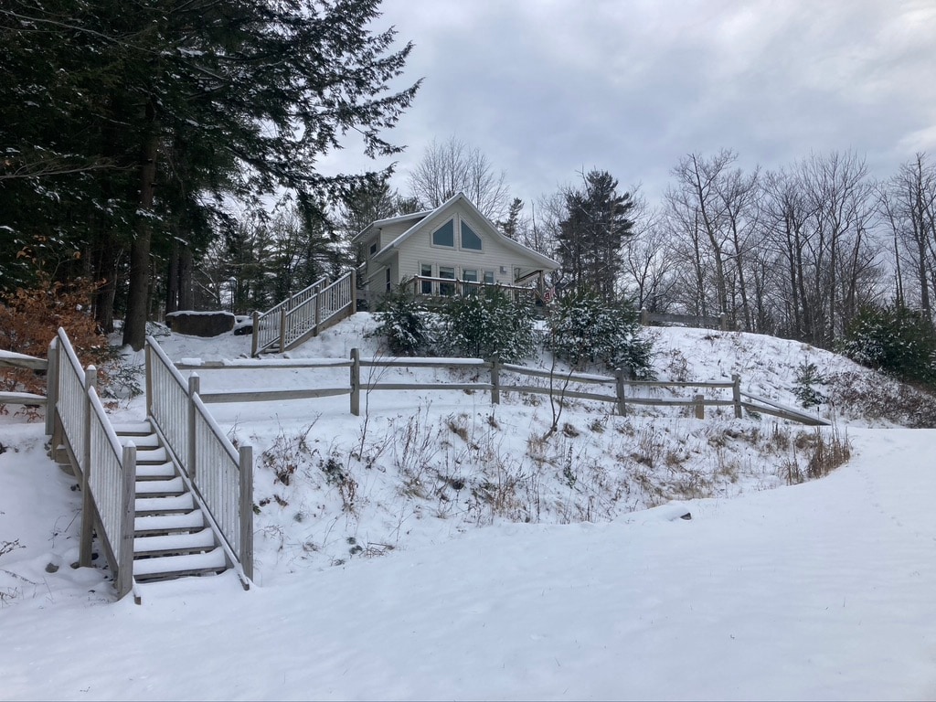 Nowoczesny design w wyjątkowej scenerii tworzy wyjątkowe doświadczenie Adirondack bez tłumów. Nowa konstrukcja na 3 poziomach z naturalnym światłem w całym budynku. Odosobniony, a jednocześnie pełen światła i długich widoków na góry, Legacy Orchard i las. Główna sypialnia z pełną łazienką, przestrzeń do pracy. W pełni wyposażona kuchnia i cedrowa wanna z hydromasażem na tarasie (dostępna przez cały rok!) sprawiają, że domek jest wyjątkowym miejscem. Świetny dostęp do wszystkich zimowych atrakcji na świeżym powietrzu.