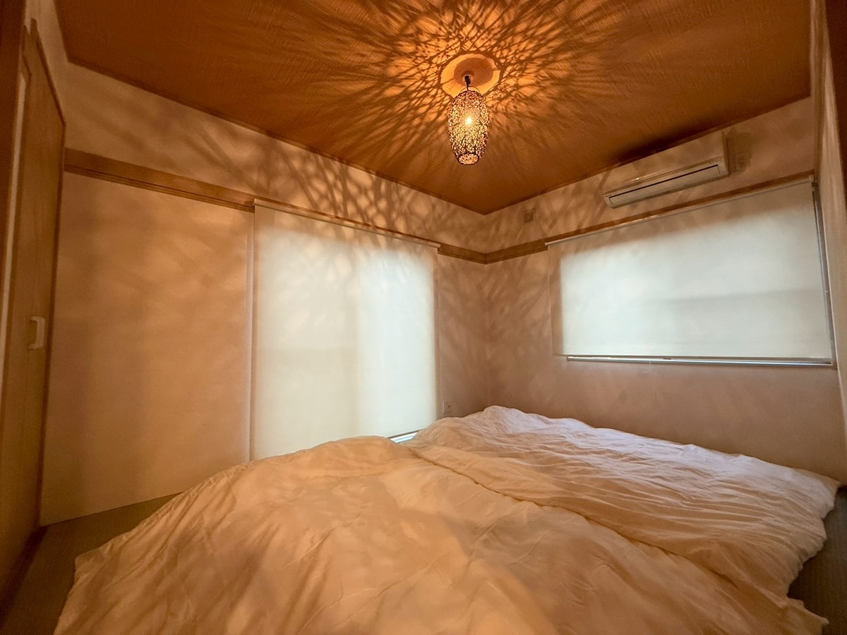 Nazwałem go Balifornia, ponieważ zaprojektowałem kurorty plażowe na Bali i w Kalifornii. W pobliżu nie ma innych domów, więc możesz spokojnie cieszyć się życiem na świeżym powietrzu! Miejsce znajduje się przy ulicy, więc w ciągu dnia jest tu duży ruch, ale w nocy jest niewiele samochodów, więc jest to cicha, prywatna przestrzeń. Oprócz salonu są 2 pokoje z łóżkami pojedynczymi i 1 pokój z 4 łóżkami (2 rozkładane sofy). Może pomieścić do 8 osób.(Będzie to jedno łóżko na osobę) Ponadto nie zezwalamy na wejście do muzeum więcej niż 8 osobom.(Niemowlęta itp. nie są wliczane, dlatego w przypadku dzieci prosimy o kontakt z nami!) Jeśli naruszysz zasady, zostaniesz poproszony(-a) o opuszczenie pokoju w momencie stwierdzenia naruszenia i nie otrzymasz zwrotu pieniędzy. Samodzielne zameldowanie o 15:00, a wymeldowanie o 10:00. Zwierzęta nie mogą wchodzić do muzeum. Ze względów higienicznych zasadniczo nie zostawiamy przypraw, dlatego prosimy o zabranie ich ze sobą.