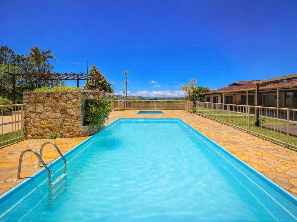 Desfrute de momentos inesquecíveis com sua família em nossa Farm House, um espaço aconchegante para até 10 hóspedes. Cercada pela natureza, é o lugar perfeito para relaxar e se desconectar da rotina. Aproveite nossa piscina em meio ao verde, caminhe por trilhas tranquilas ou pedale pelas ruas cercadas de árvores, respirando ar puro. Ideal para famílias e grupos que buscam conforto, lazer e contato direto com a natureza. Aqui, cada detalhe foi pensado para proporcionar descanso!