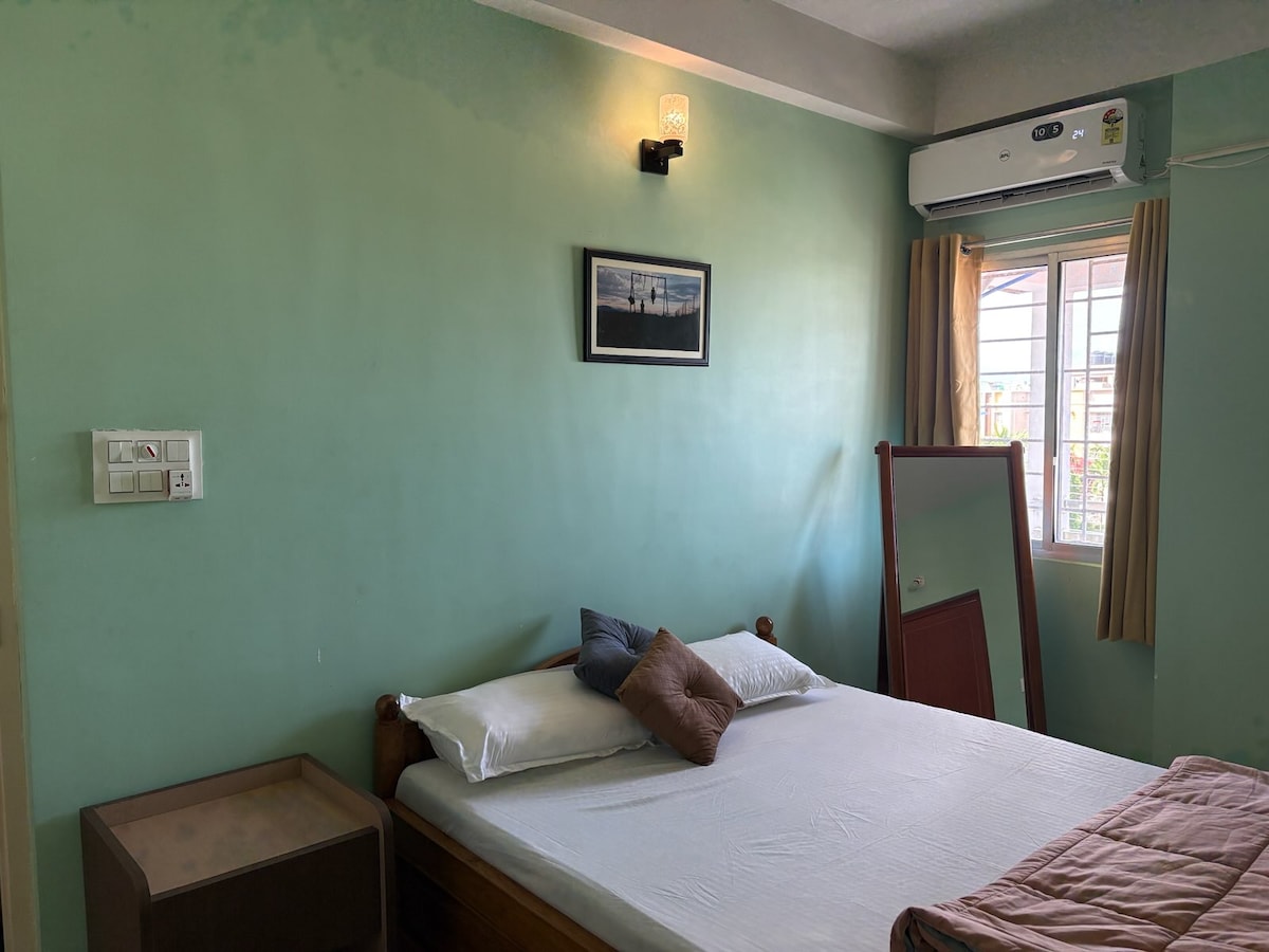 Witamy w nowym mieszkaniu z 2 sypialniami, zaprojektowanym dla gości, którzy cenią sobie komfort, spokój i domową atmosferę. Położony w doskonałej, ale spokojnej okolicy, idealny dla rodzin, przyjaciół i wszystkich. • Przestronne, nowoczesne wnętrza 2BHK (klimatyzacja w 1 pokoju) • Mieszkanie na trzecim piętrze zapewniające prywatność, lepsze oświetlenie i wentylację • Dobrze wyposażona kuchnia do gotowania w domowym stylu • Balkon i otwarte przestrzenie z dużą ilością naturalnego światła i świeżego powietrza • Bezpieczne i higieniczne środowisko • Parking dla Twojej wygody