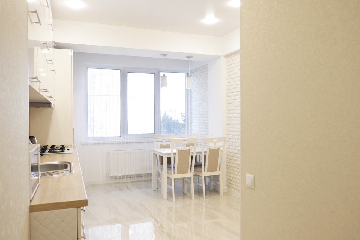 Wygodny, rodzinny apartament z 3 pokojami w Botanicy z pięknym luksusowym wykończeniem. Znajduje się w małym budynku mieszkalnym z 19 lokalami na cichej ulicy z dużą ilością miejsc parkingowych. Zaledwie 3 km od centrum miasta jest bardzo blisko do najpopularniejszych barów i restauracji w Kiszyniowie. Przystanek taksówek maxi znajduje się tuż przed buldingiem, a do następnego dworca autobusowego można dojść w ciągu 5 minut spacerem. Zapewniamy szybki internet bezprzewodowy, a także dostęp do konta Netflix.