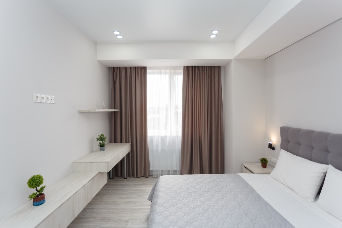 Atmosferyczne i przytulne miejsce na pobyt. Położony w bardzo komfortowej strefie, blisko centrum miasta, w otoczeniu parku, targowisk, sklepu zoologicznego, dworców autobusowych, banków i bankomatów, restauracji, apteki, siłowni, salonów piękności itp. 10 minut od centrum, autobusem. Mamy świetne połączenie internetowe Wi-Fi, bardzo wygodne do pracy z domu, dla freelancerów. W naszym apartamencie znajdziesz wszystko, czego potrzebujesz, aby czuć się komfortowo. Witajcie!