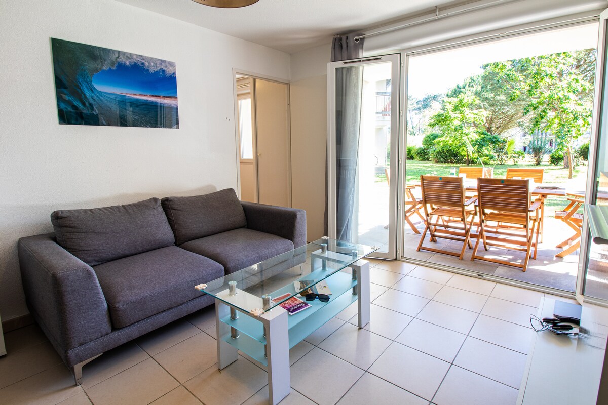 Jasny apartament o powierzchni 35 m², typu % {smartbis, z pięknym tarasem przeciwsłonecznym, położony w nadmorskim kurorcie Soustons Plage. Zakwaterowanie znajduje się w rezydencji "Le Domaine du Golf de Pinsolle", w samym sercu golfa, 800 m od plaży Vieux Boucau nad jeziorem morskim i 1 km od oceanu. Bezpłatny dostęp do dużego odkrytego basenu ogrzewanego z wakacji wielkanocnych i oferującego basen dla dzieci, a także przyjemne solarium. Natura, spokój, urok i relaks na spotkaniu.