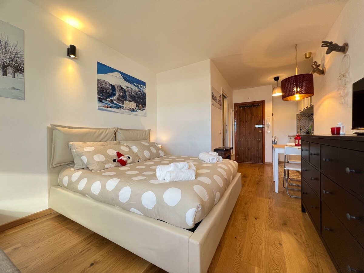 Divertiti e rilassati con la famiglia in questo delizioso trilo7 posto al 7°PIANO dell'Hotel Paradiso(1650mt) in Aremogna Roccaraso a 100mt dagli impianti. ideale x sciatori e x chi vuole passeggiare tra rifugi. Casa DI Giò è molto luminoso x le 2 ampie finestre sul bellissimo panorama. Interamente rimbiancato con materassi piumoni cuscini tutti nuovi x offrire ambienti/arredi sanificati al max del comfort/pulizia. I servizi dell'Hotel: piscina, miniclub sono momentaneamente sospesi