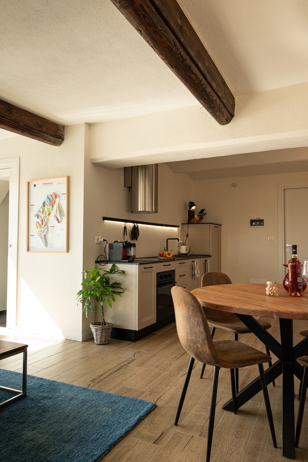 W samym sercu La Morra, w niedawno odrestaurowanym budynku z 700 roku, z charakterystycznymi drewnianymi sufitami, zakwaterowanie jest zorganizowane na dwóch piętrach. W połączeniu w rustykalnym stylu z nowoczesnymi meblami znajduje się kuchnia; duży salon ze stołem dla 8 osób, sofa; salon z telewizorem i sofami na wyższym piętrze. Trzy sypialnie z łóżkami typu queen i łóżeczkiem dziecięcym. Apartament jest uzupełniony trzema łazienkami z prysznicem i dostępem do balkonów.