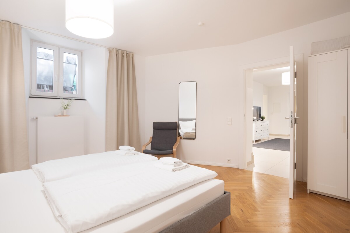Ten uroczy apartament w samym sercu dzielnicy Berlin Mitte jest otoczony kawiarniami, sklepami i galeriami, a jednocześnie jest cichy. Jest pięknie zaprojektowane i wystrojone w najdrobniejszych szczegółach. Apartament może pomieścić 5 osób. W sypialni znajduje się łóżko podwójne 160x200. Salon wyposażony jest w kącik wypoczynkowy z rozkładaną sofą 140x200 oraz pojedynczym rozkładanym fotelem. Droga do stacji metra, autobusów i tramwajów jest krótka. W pobliżu znajdują się restauracje, supermarkety i muzea. Mamy windę.