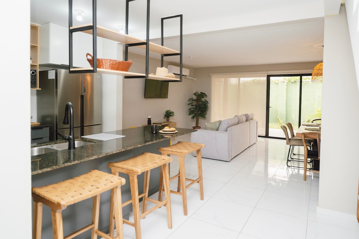 Witaj w naszym domu w San Miguel, przytulnej i stylowej przestrzeni, w której będziesz cieszyć się komfortem i ekskluzywnością. Położony w bezpiecznej, zamkniętej dzielnicy z basenem, siłownią i placem zabaw, znajduje się zaledwie kilka minut drogi od PriceSmart i centrów handlowych. W domu znajdują się trzy klimatyzowane sypialnie, z których jedna ma taras z widokiem na wulkan. Obejmuje również wygodny salon, w pełni wyposażoną kuchnię i pralnię. Z niecierpliwością czekamy na Twój przyjazd i niezapomniane atrakcje!