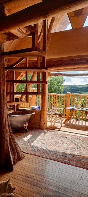 Goytree Glamping and Treehouses przedstawia Bees Bower: od miedzianej wanny po gliniane ściany, to niebiańskie mieszkanie jest arcydziełem rzemiosła. Ta wyjątkowa przestrzeń, będąca częściowo chatką, częściowo namiotem i częściowo domkiem na drzewie, położona na szczycie zagajnika, który schodzi nad strumieniem do doliny, z śpiewem ptaków w dzień i gwiazdami w nocy, oczaruje Cię. Idealne na romantyczne wypoczynek, wakacje poza siecią z psami lub spacery, zwiedzanie lokalnych parków narodowych i góry.