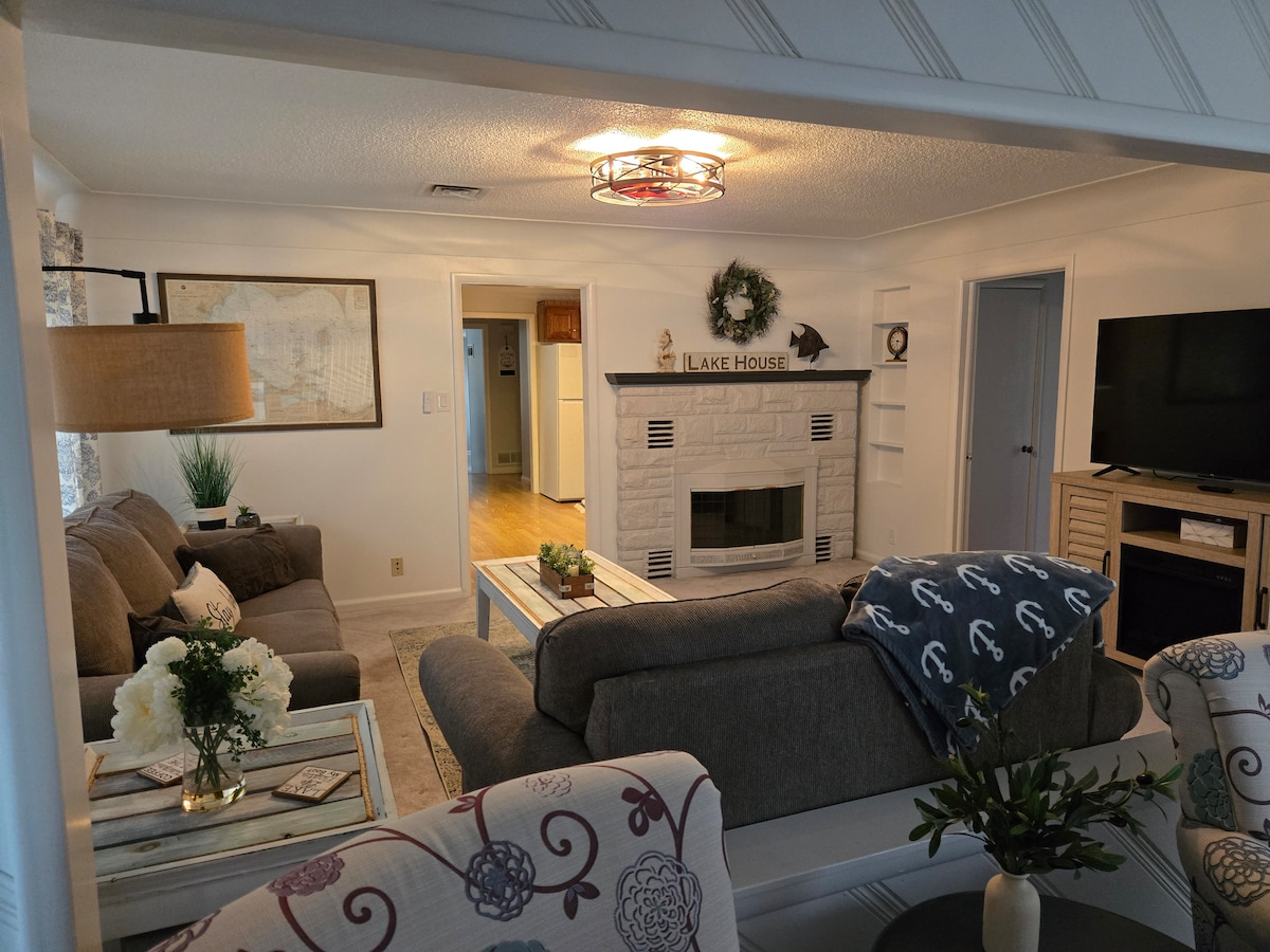 Witamy w naszym rustykalnym domku nad jeziorem, ciepłym i przyjaznym miejscu idealnym dla rodzin i grup. Wewnątrz znajduje się oszałamiający dwustronny kamienny kominek, wysokie sufity, przytulne przestrzenie mieszkalne i w pełni wyposażona kuchnia idealna na spotkania. Wyjdź na zewnątrz, aby podziwiać rozległe widoki na jezioro, prywatne jacuzzi, palenisko, basen i wiele miejsc do siedzenia na świeżym powietrzu, aby się zrelaksować i odpocząć. Niezależnie od tego, czy lubisz spokojne poranki nad wodą, czy wieczory przy ognisku, ta chata jest stworzona na niezapomniane pobyty.