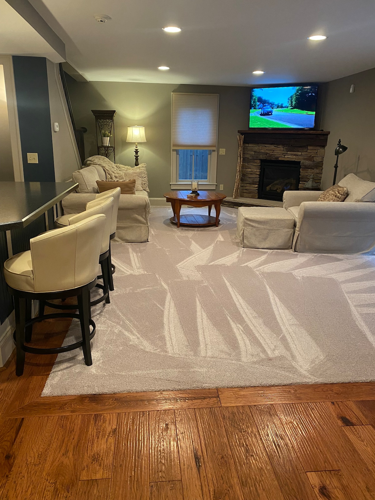 Duży pokój z łazienką i częścią wypoczynkową. Dostęp do kuchni na górze jest do wyłącznego użytku klientów Air BnB 24 godziny na dobę. W pełni wyposażona kuchnia z kuchenką, piekarnikiem, kuchenką mikrofalową, ekspresem do kawy Keurig, oddzielną lodówką dla każdego pomieszczenia i wygodną częścią wypoczynkową. Przestrzeń w szafce jest dostępna. Ciesz się darmowym Wi-Fi, Alexą, Netflixem oraz w dużym pokoju z łazienką, darmową telewizją kablową. Zawiera kawę i środki czystości. Oczywiście wszystkie media są wliczone w cenę.