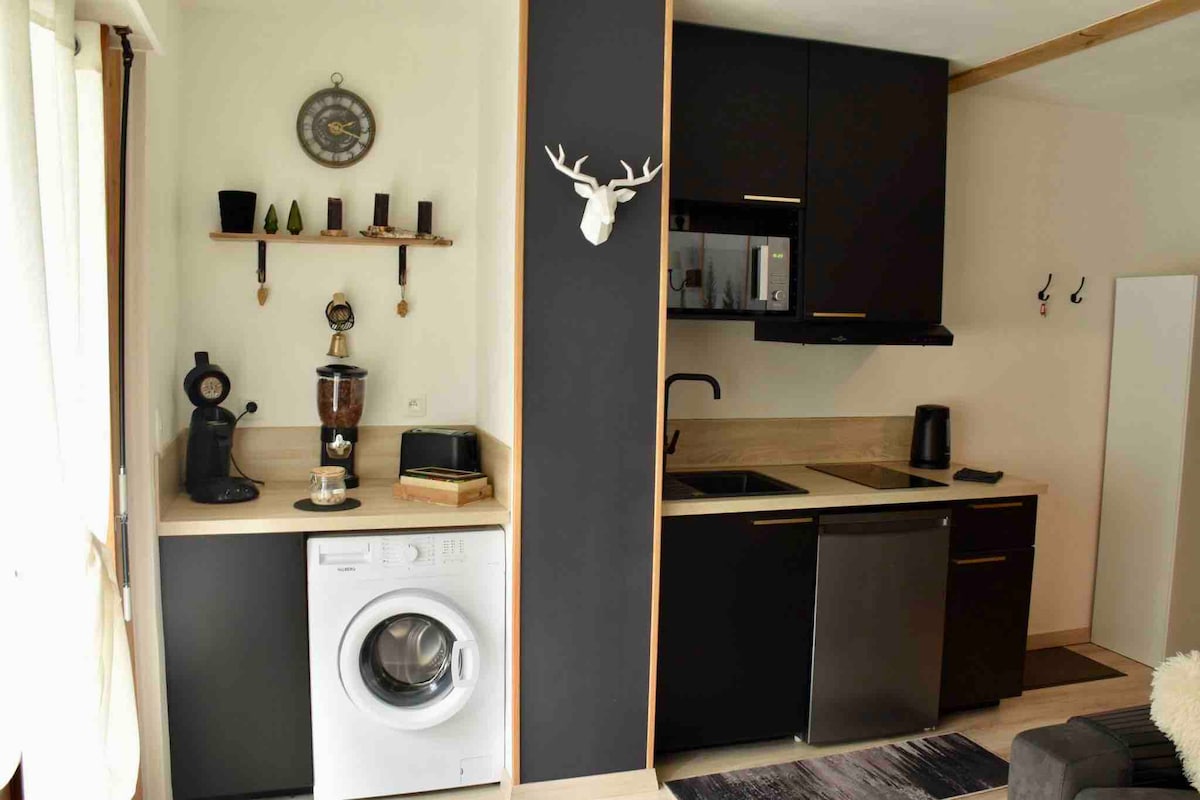 Uroczy apartament na 5. piętrze z widokiem na Mont Blanc w samym sercu miasta. 🛏Sypialnia: Bardzo przestronna, z miejscem do przechowywania i podwójnym łóżkiem 160/200 🛋Salon: Duża narożna sofa z zakrzywionym płaskim ekranem, soundbarem i nastrojowym oświetleniem. 🛀🏻Łazienka: duża wanna i pralka/suszarka. 🍽Kuchnia: zmywarka, piekarnik, płyta indukcyjna, ekspres do kawy Prywatny parking i winda Idealne dla par lub osób samotnych