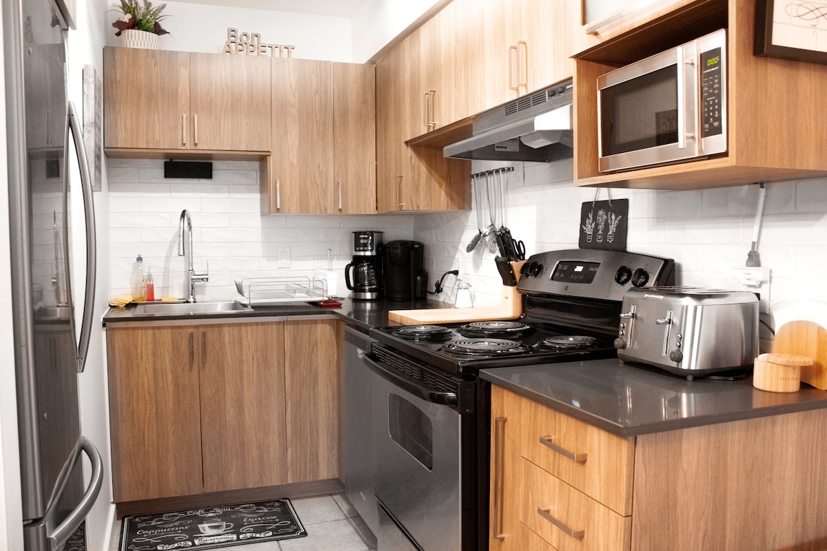 Świeżo odnowiony apartament z 2 sypialniami w samym sercu wioski. To najłatwiejsze i najwygodniejsze Airbnb w Knowlton. Nasz piękny apartament oferuje dużo stylu, wygody i przystępności cenowej. Pokochasz 70-metrową łazienkę z łukowatą kabiną prysznicową i wanną. W salonie znajduje się biurko, które jest dobrze usytuowane, aby zapewnić ładne tło do rozmów wideo. Kuchnia jest w pełni wyposażona. 21 min - Narty i wędrówki w Sutton 20 min - Narty i wędrówki w Bromont 37 min - Narty w Mont Orford