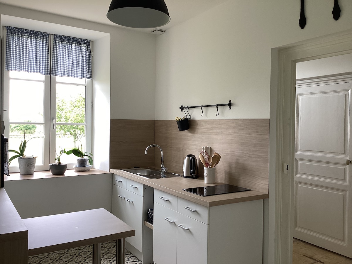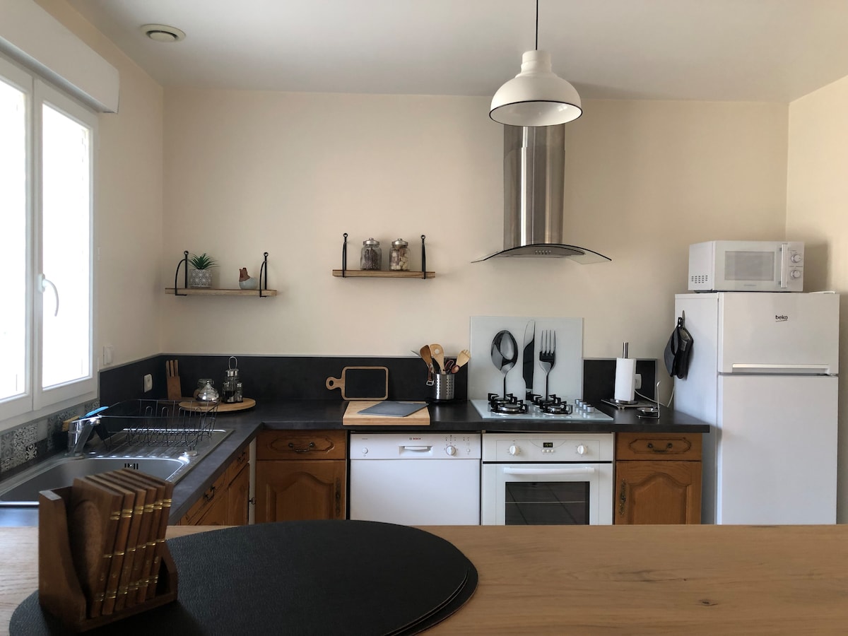 Urocze, klimatyzowane mieszkanie, 2 sypialnie, centrum Ruffec, 47 m², 2. piętro cichego budynku, blisko centrum Ruffec i wszystkich udogodnień. Jasne i starannie urządzone, oferuje: >2 wygodne sypialnie z przestrzenią do przechowywania, z których jedna może być przekształcona w miejsce pracy lub relaksu > Ciepły pobyt W pełni wyposażony aneks kuchenny (płyta grzewcza, kuchenka mikrofalowa, lodówka, przybory kuchenne itp.) > Jadalnia < Wi-Fi <Pościel i ręczniki zapewnione