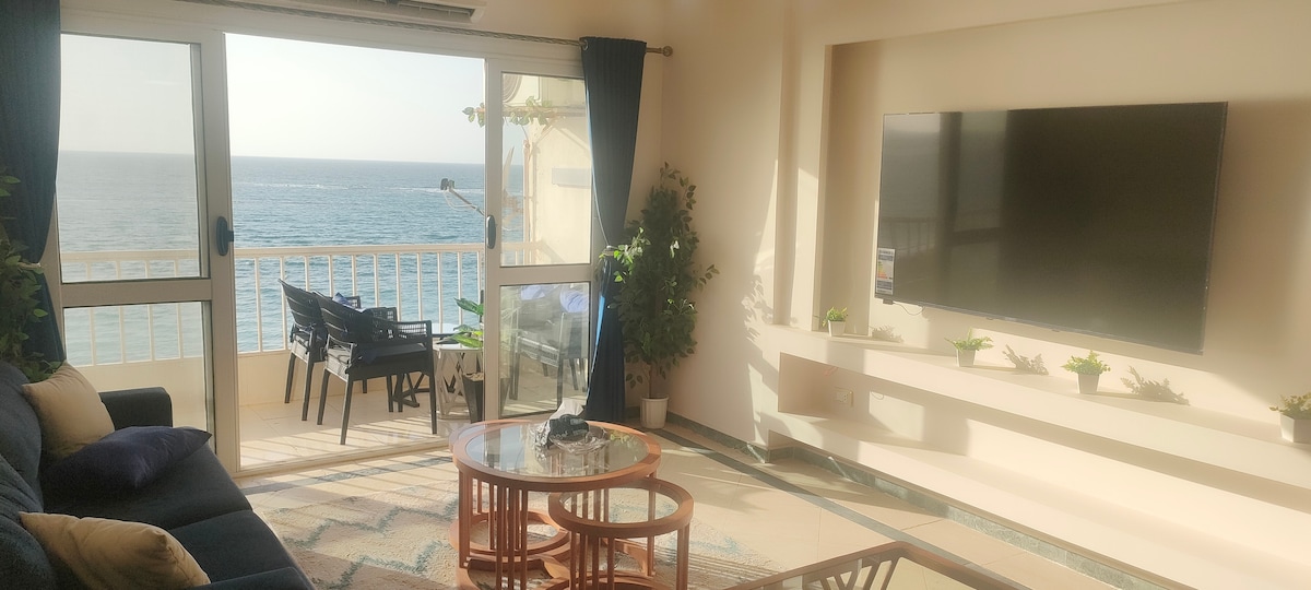 Wyróżniający się apartament na plaży Aleksandrii w okolicy Montazah. Składa się z trzech sypialni z 6 łóżkami, dwóch łazienek, dużego holu z jadalnią, salonu i pokoju dziennego. Oprócz widoku na morze na całej szerokości sali. Duży balkon z wiklinową sofą i krzesłami oraz klasycznymi koralikami. Apartament znajduje się na dziewiątym piętrze, dzięki czemu oferuje wyjątkowy widok na plażę, którego nigdy wcześniej nie zobaczysz.