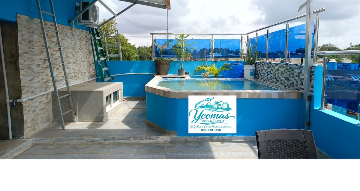 Posiadłość ze wszystkimi udogodnieniami 25 minut od Santo Domingo. Może być przeznaczony na długi lub krótki pobyt dla 12 osób (4 pokoje z klimatyzacją oraz rozkładana sofa w salonie z wentylatorem sufitowym) lub na wycieczki grupowe (należy potwierdzić liczbę osób przed dokonaniem rezerwacji). Będziesz mieć dostęp do domu, altany z pełną łazienką, Wi-Fi, telewizora, stołu bilardowego, sprzętu muzycznego, basenu, jacuzzi z grzejnikiem, grilla na węgiel drzewny, boiska do koszykówki, stołu do ping ponga, gier, dużych ogrodów i farmy