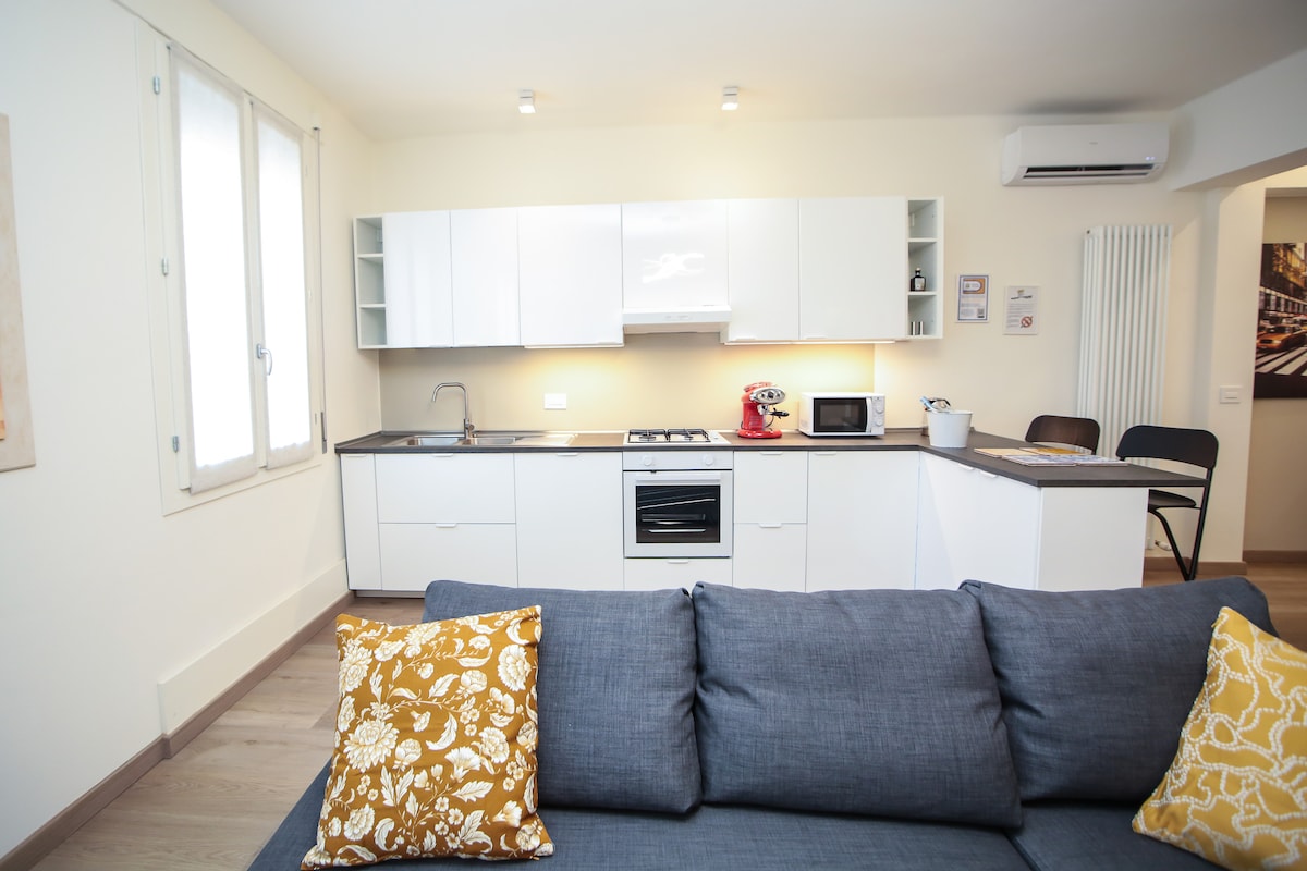 Przytulny apartament 2 minuty spacerem od wejścia do Ferrari i 5 minut spacerem od muzeum Ferrari. Może pomieścić 4 osoby. Składa się z jednej sypialni, jednej łazienki, jednej otwartej przestrzeni z w pełni umeblowaną kuchnią i salonu, w którym znajduje się sofa oraz balkon. Możliwość zaparkowania samochodu w naszym prywatnym garażu lub na bezpłatnym parkingu na świeżym powietrzu zarezerwowanym dla osób mieszkających w budynku.
